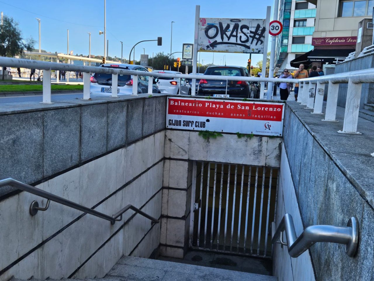 Puede que sea difícil visualizarlos mentalmente en toda su magnitud, pero 2.000 metros cuadrados… Son muchos metros cuadrados. Una superficie considerable, qué duda cabe. La misma que ocupa el popularmente conocido como ‘balneario municipal’ de San Lorenzo, ubicado a la altura de la escalera 13, debajo de la avenida de Rufo Rendueles… Y que, hoy por hoy, poca utilidad exhibe. En efecto, si se exceptúan los casi 500 metros cuadrados que están adscritos a los servicios municipales de Salvamento en Playas, y de Parques y Jardines, el resto del total, antaño empleado por la ciudadanía para el disfrute de la playa, permanece cerrado al público, con su acceso desde la mencionada arteria clausurado mediante una valla metálica, sin uso y languideciendo. Una situación que, ahora, el PSOE de Gijón se ha propuesto cambiar; por ello, el partido llevará al Pleno de este mes, fechado para mañana miércoles, un ruego de recuperación para convertir el ‘balneario’ en un lugar de utilidad para gijoneses y foráneos.