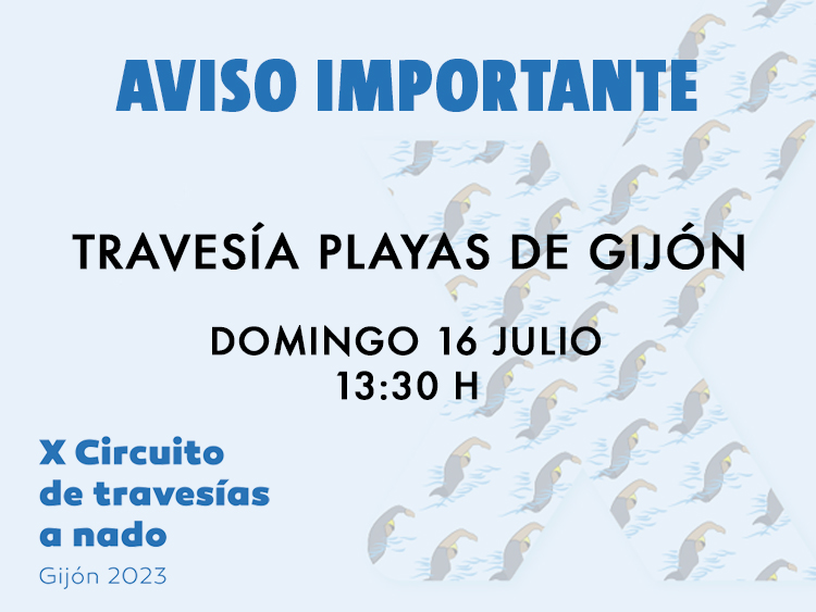 Desde el Patronato Deportivo Municipal de Gijón han informado esta tarde que debido a la previsión marítima y de viento para este sábado 15 de julio, la VII Travesía Playas de Gijón ha tenido que ser aplazada y se disputará el domingo 16 de julio a las 13:30 h. con salida desde la Playa de Peñarrubia.
