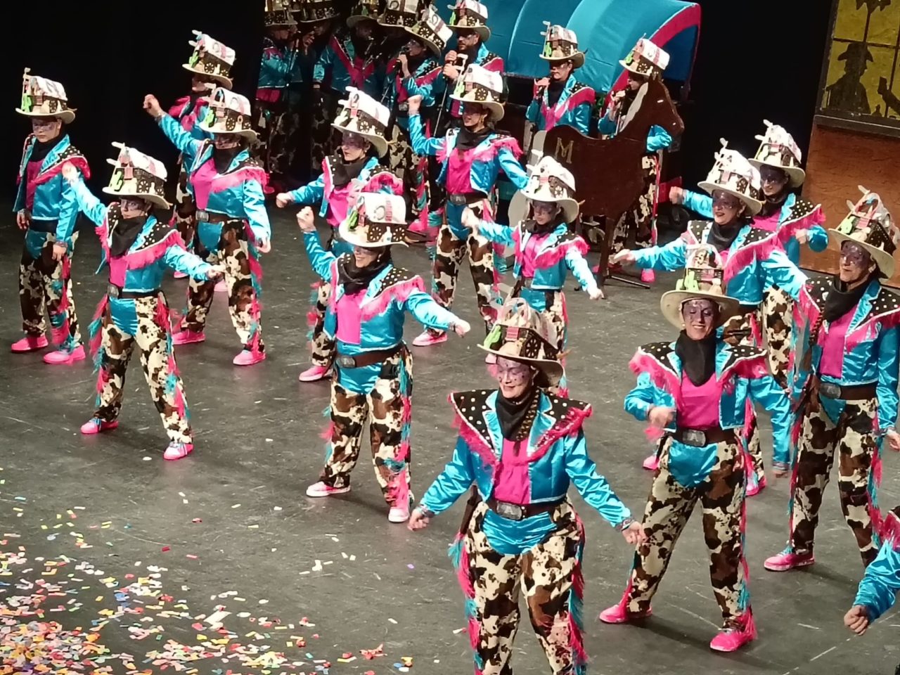 Cerraron la primera tanda de concurso Los Mazcaraos invitándonos a asistir a un rodeo, al más puro estilo de Far West desde su ‘Salón Mazcarao’. «No seas muermo ni tostón, mueve el culo del sillón», tarareaban, haciendo también alusión a Donald Trump, presente en muchas de las letras charangueras. «Hacer de Gaza un resort, aranceles hasta el sol…», cantaron.