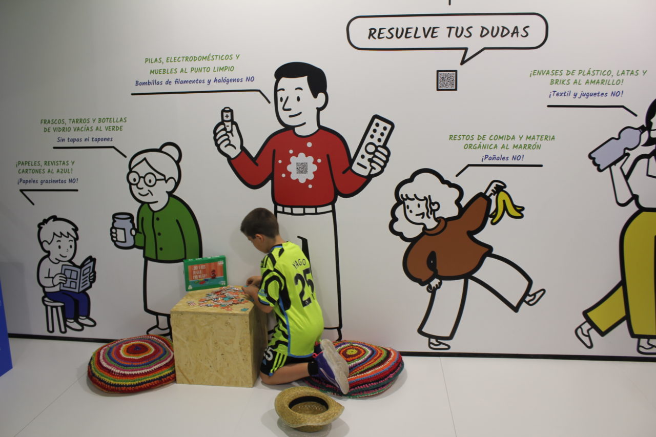 El estand de Cogersa integra actividades lúdicas que ponen a prueba el conocimiento de los participantes sobre el uso correcto de los contenedores de colores y las buenas prácticas cotidianas para reducir, reutilizar y reciclar. Este año el consorcio quiere comunicar además la relación directa que hay entre la economía circular y la lucha contra el cambio climático, a través de la reducción de las emisiones de gases de efecto invernadero (GEI).