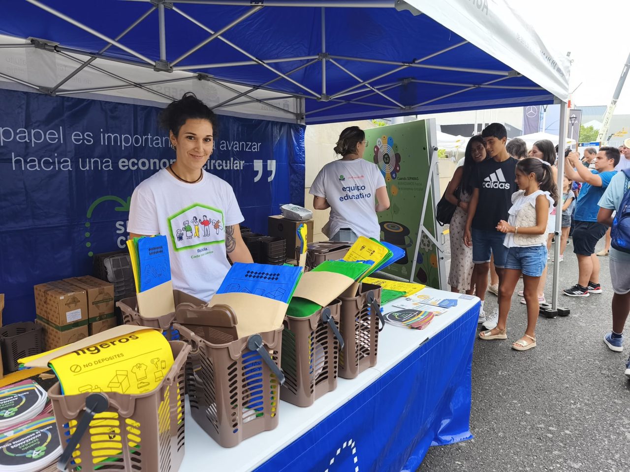 El stand de Cogersa, bajo el lema “Recicla. Cada casa cuenta”, permanecerá abierto este jueves hasta las 21:00 horas ayudando a las familias con el reciclaje y repartiendo cubos para este fin