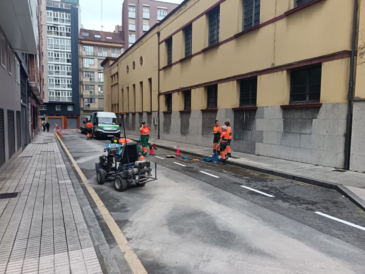 Todo dependía de que cierta máquina fresadora perteneciente a la Empresa Municipal de Servicios de Medio Ambiente Urbano (EMULSA) quedase disponible… Y, por fin, con dicha pieza liberada y a punto, la recuperación de plazas de aparcamiento en el entorno de la antigua comisaría de la Policía Local de Gijón ha comenzado a materializarse. Las cuadrillas de trabajo dependientes del Ayuntamiento han iniciado los trabajos de borrado y nivelación de las plazas hasta ahora reservadas a los vehículos policiales -varios de ellas, dotadas de cargadores para los coches patrulla híbridos enchufables-; las mismas que, en alrededor de un mes, dotarán al barrio de Ceares de una veintena de estacionamientos extra, concebidos para compensar los perdidos con la rehabilitación de la avenida Pablo Iglesias. De hecho, la calle Juan I ha sido la elegida como primera en la que actuar, antes de hacer lo propio en San José y en Hermanos Felgueroso.