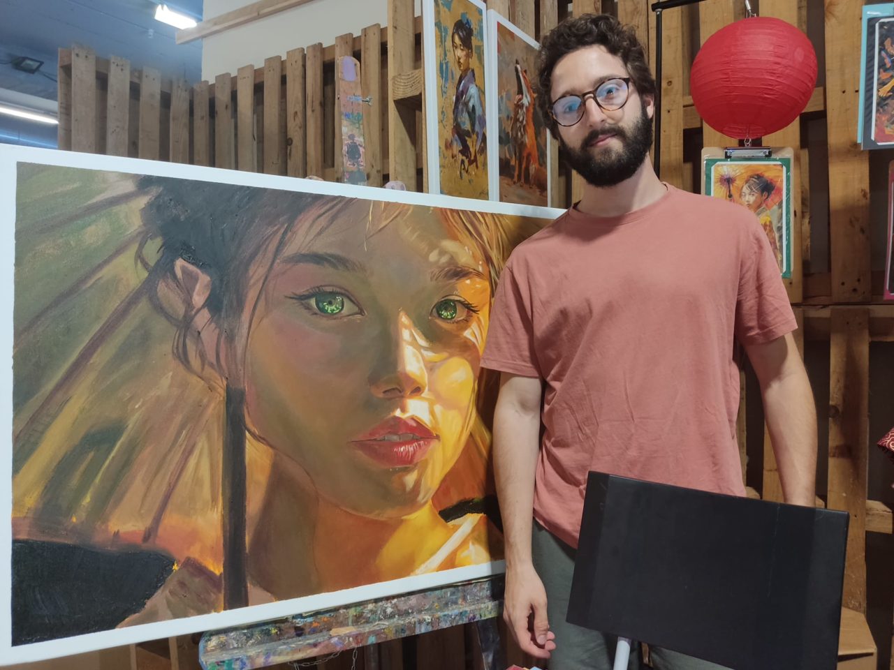 Tras una primera experiencia en la Feria de 2024 en la que proliferaron los contactos y se afianzó su proyecto, el joven artista vuelve a exhibir su potencial este año, nuevamente de la mano Gijón Impulsa, con la mirada puesta en seguir expandiéndose