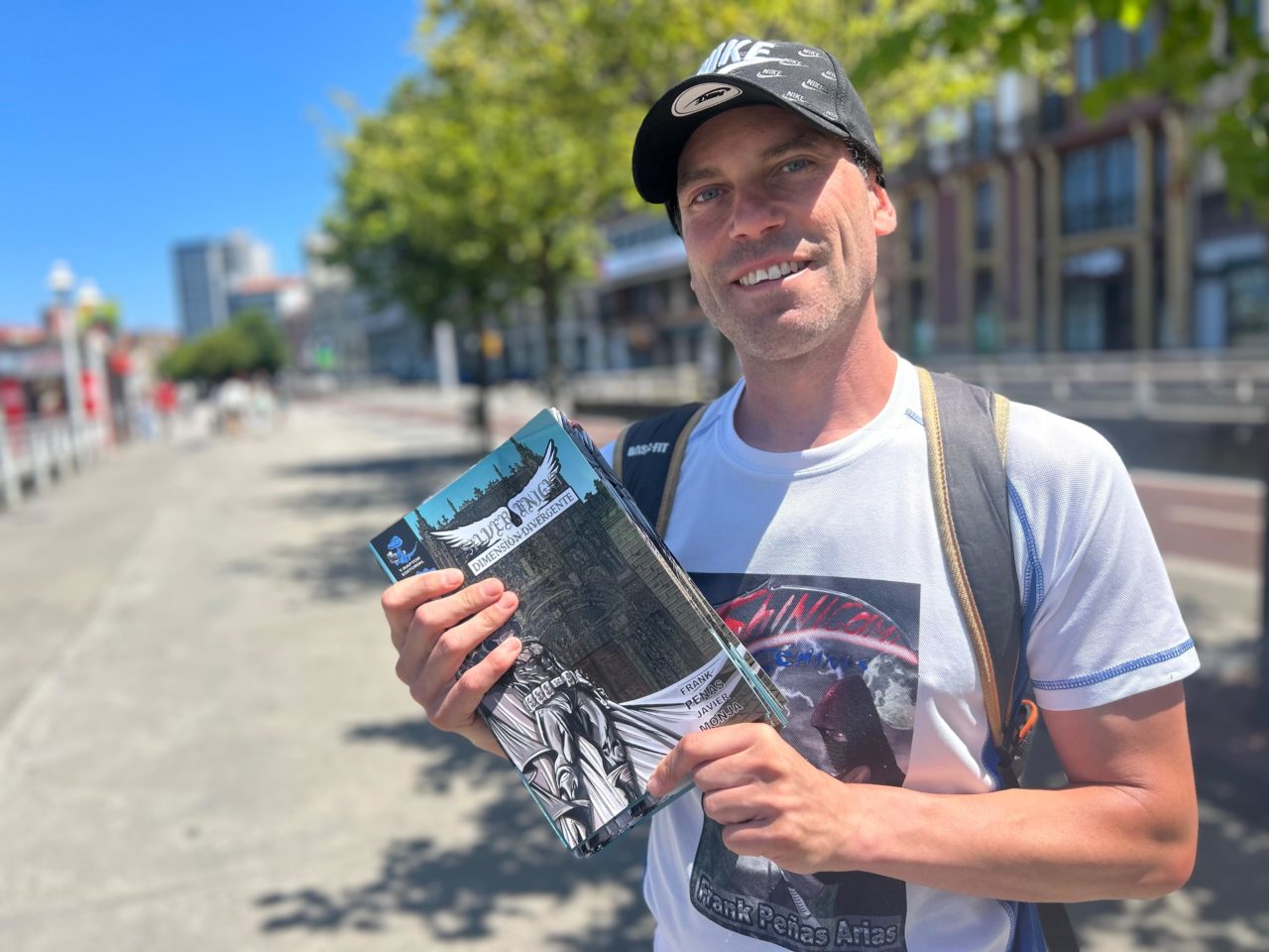 Sol, turismo y cómic: Javier Monja se lanza a vender su obra a mano en pleno centro de Gijón