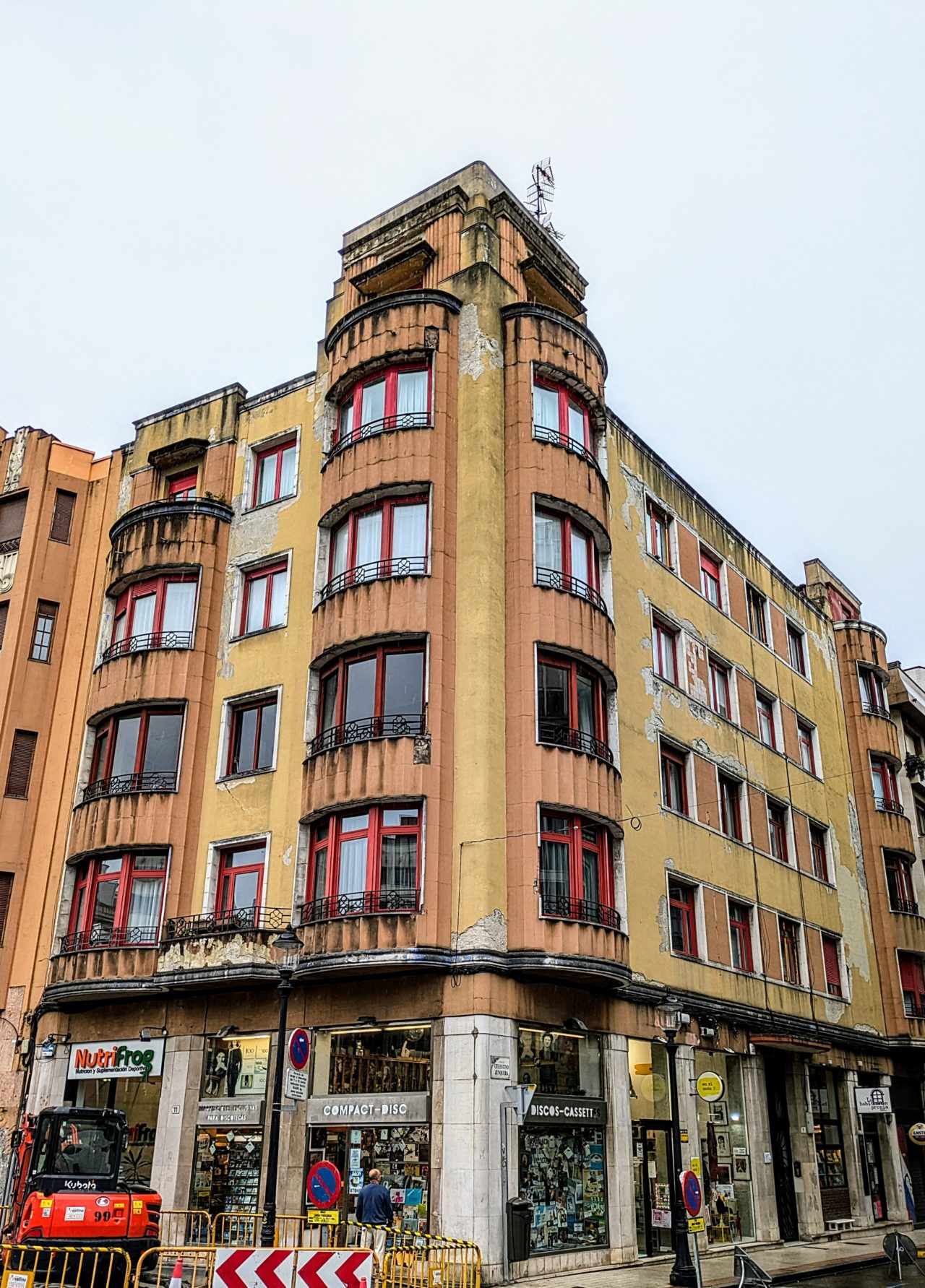 Hoy os quiero hablar de uno de esos bellezones de edificios que, con un poquitín de suerte —obras mediante— volveremos a ver resplandecer en un par de semanas. Me estoy refiriendo al edificio situado en la calle Celestino Junquera 1, esquina Plazuela San Miguel. Los que ya lo tengáis plenamente localizado os daréis cuenta de que justo ahora está un proceso de rehabilitación —y parece que también de mejora energética— que, por lo que se puede ver, al menos en la fachada que asoma a Celestino Junquera y que ya está terminada, nos permitirá recuperar para el disfrute ciudadano una pequeña joya arquitectónica de la ciudad.