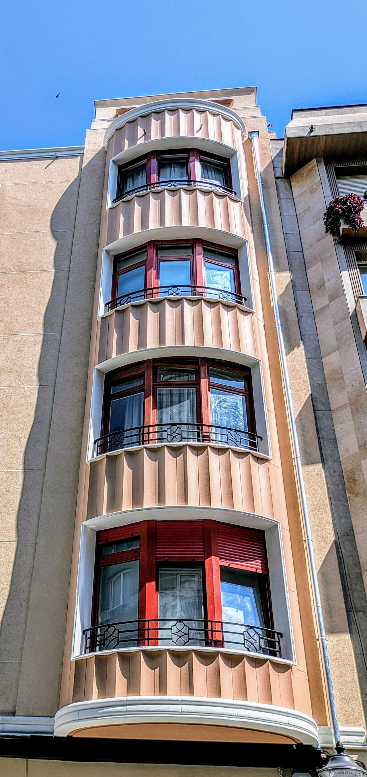 Cabe recordar que en ese momento el estudio del Busto diseñaba y ejecutaba numerosos edificios en la ciudad enmarcados dentro del art decó, y pese al perfil netamente racionalista de nuestro edificio, no abandona, en este caso, ese tipo de simbología y detallismo. Los detalles continúan siendo vistosos en partes muy concretas del edificio, como por ejemplo la puerta de entrada al portal, la más espectacular de toda la ciudad —en mi opinión— si valoramos únicamente la puerta de entrada; aunque admito que si hiciéramos una competición en ese sentido las opciones y rivales serian numerosos, sin ir más lejos dentro de la propia obra de estos dos tracistas.