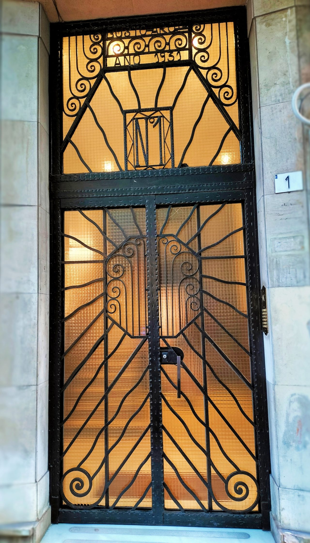 Si tenéis la suerte de poder dedicarle un ratín a su contemplación, veréis el trabajo de la forja y el vidrio, la firma del estudio de arquitectura en la parte superior y el año de finalización de la obra, 1931. Permitidme un inciso: no deja de llenarme de curiosidad el imaginar lo que debían sentir los gijoneses en ese arranque de década, cuando las construcciones más destacadas de la ciudad eran tan diferentes a lo concebido hasta aquel momento, no solo en volumen, sino especialmente en su apariencia e imagen.