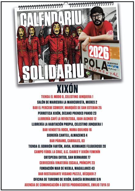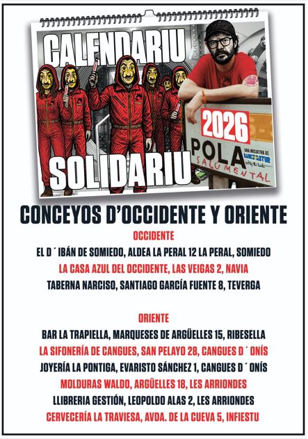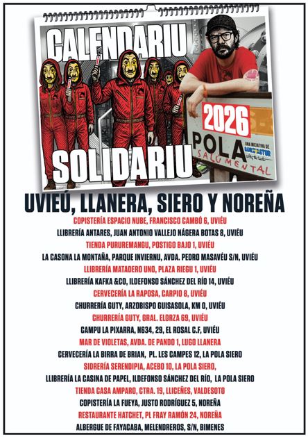 Un año más llega el calendario solidario 2026, creado por el artista conocido como Banksy Astur, y lo hace con una propuesta que mezcla creatividad y compromiso social en unas ilustraciones que juegan con los nombres de los pueblos asturianos. Su precio es de cinco euros y se pude adquirir en diversos puntos de Gijón, Oviedo, Llanera, Siero, Noreña, Avilés, Cabo Peñas, Grado, Somiedo, Navia, Teverga, entre otros.