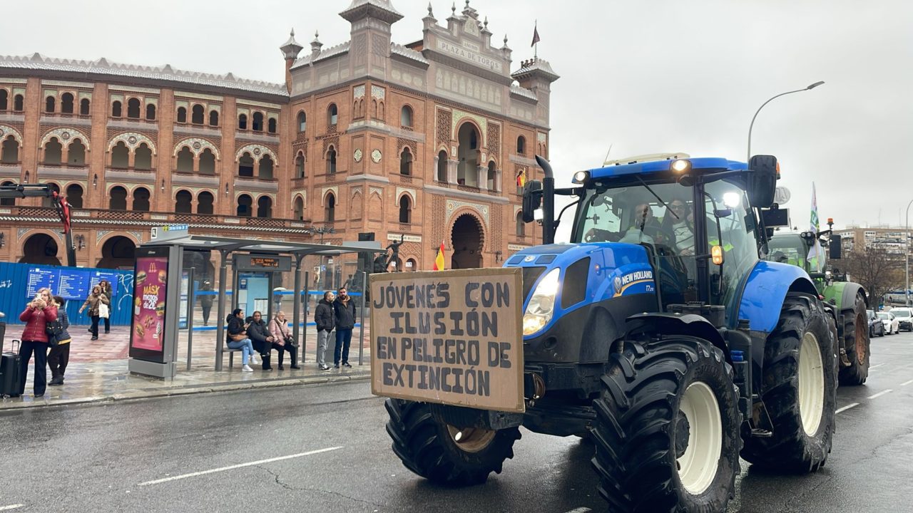 Antes de las 12.00 horas de este miércoles, los primeros tractores llegados desde distintos puntos del país comenzaban a entrar en Madrid. Hoy el campo toma la capital. Agricultores y ganaderos han salido a la calle para defender su futuro y visibilizar una posición firme contra el acuerdo con Mercosur, contra una Política Agraria Común que consideran injusta y en defensa de precios justos amparados por la Ley de la Cadena. Fuentes de la Delegación del Gobierno en Madrid cifran en 367 los tractores que participan en las cinco columnas y 56 los autobuses que han llegado a la capital para secundar esta protesta. Cerca de Colón, ya cientos de tractores hacen a esta hora sonar sus bocinas como señal de protesta, donde se concentran unos 2.500 manifestantes para participar en la protesta, según datos del departamento que dirige Francisco Martín. La movilización, convocada por la plataforma agraria Unión de Uniones, cuenta con el respaldo en Asturias de USAGA (representante regional de la organización) y de URA.