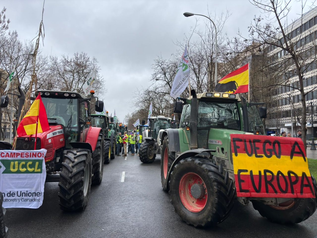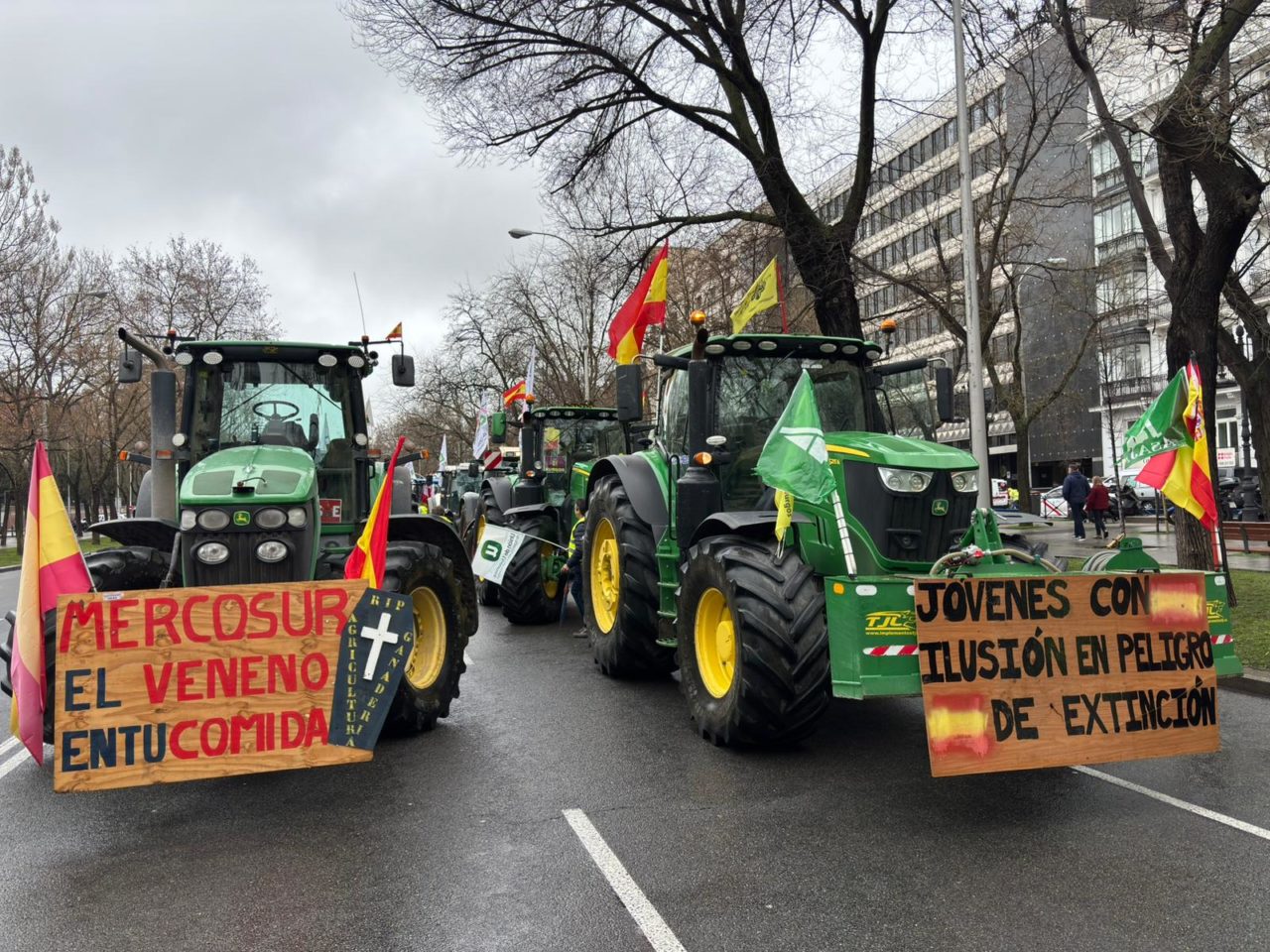 Agricultores y ganaderos de toda España, también de Asturias, colapsan el entorno del Ministerio de Agricultura contra Mercosur y una PAC que consideran injusta