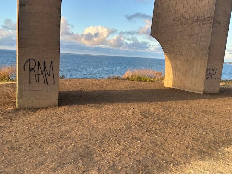El ‘Elogio del Horizonte’ amanece vandalizado con varias pintadas en referencia a ‘Rambal’
