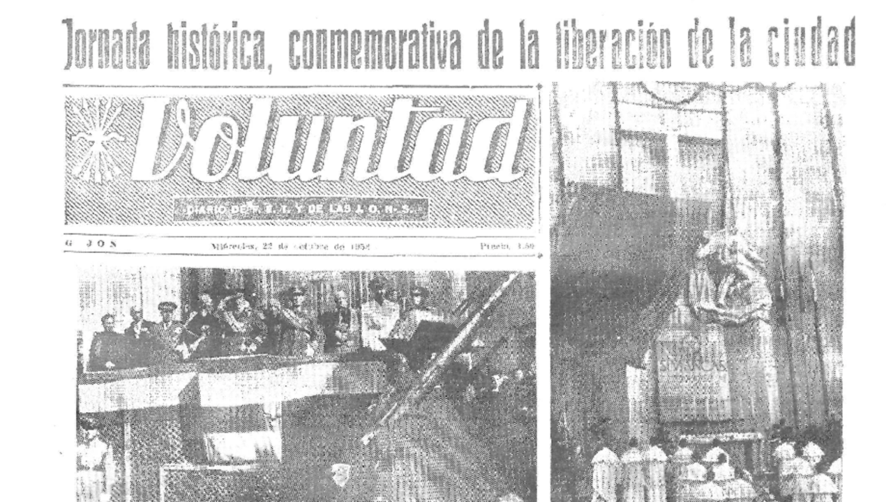 La encuesta en el Cielo no se hizo, como proponía una columna de opinión publicada en el peródico falangista Voluntad, pero en la Tierra el sentido de la fecha y la inauguración era claro: celebrar el “XXI Aniversario de la Liberación de Gijón”. La fecha “fue utilizada”, como informaba la cabecera, para inaugurar el monumento: “Utilización oportuna, porque el sacrificio y la muerte de aquellos hombres fue fecunda e hizo posible, con la exaltación de los sentimientos patrióticos, que las tropas de Franco siguieran su camino victorioso hasta reconquistar la ciudad y liquidar el Frente Norte”, presentó la crónica de los acontecimientos este periódico.