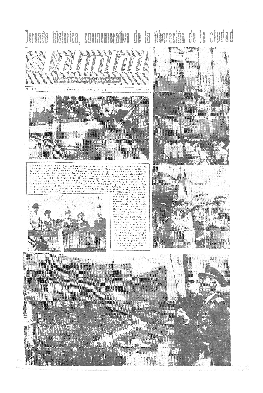 • Imágenes de la portada de Voluntad, diario de cabecera del falangismo, el 22 de octubre de 1958