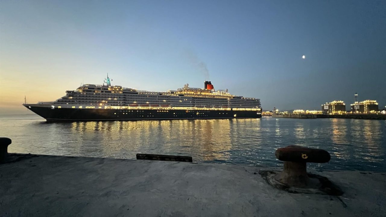 El buque, una de las joyas de la corona de la Cunard Line, atracó en El Musel a primera hora de esta mañana, y zarpará mediada la tarde para poner proa hacia La Rochelle; a bordo viajan 2.031 pasajeros, mayoritariamente británicos, y 900 tripulantes