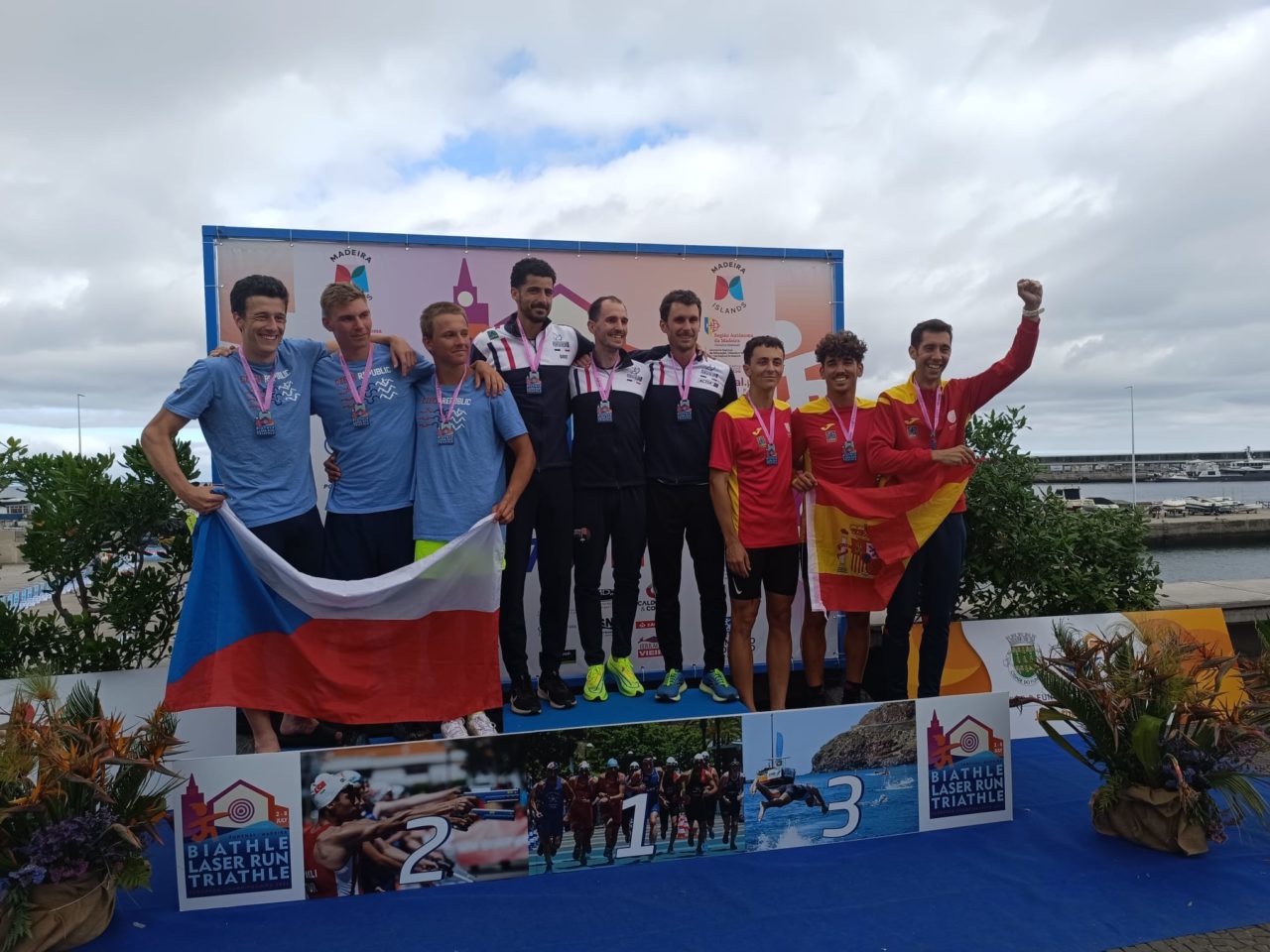 El láser run, carrera y disparo láser, fue la prueba más numerosa y en la que más preseas obtuvo la expedición asturiana. En la categoría absoluta masculina España se impuso con un oro individual de Iván Liberal que ayudó a conseguir bronce por equipos con Pablo Garcia de representación astur en el podium. También Pablo, junto a Manuel Soriano en relevos masculinos ocuparon el bronce.