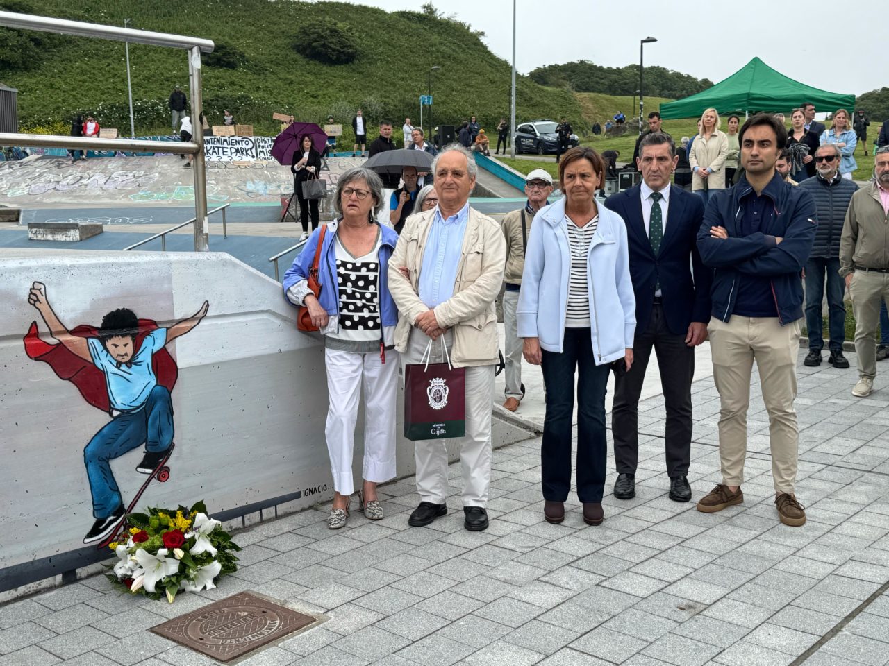 No se pudo celebrar y quedó reducido a unas breves palabras del padre de Ignacio Echeverría y la entrega de un ramo de flores en el mural existente con su figura. En la mañana de ayer estaba previsto un acto de homenaje en el skatepark de Cimavilla al conocido como ‘héroe del monopotín’ en el atentando de 2017 en Londres, al que ahora da nombre y en el que ya luce una placa en su memoria, pero los silbidos y protestas de un grupo de usuarios en descontento por el estado de la instalación obligó a tomar la decisión de suspenderlo, para disgusto de familiares y autoridades presentes, como la alcaldesa Carmen Moriyón o el concejal de Deportes y Educación, Jorge Pañeda.