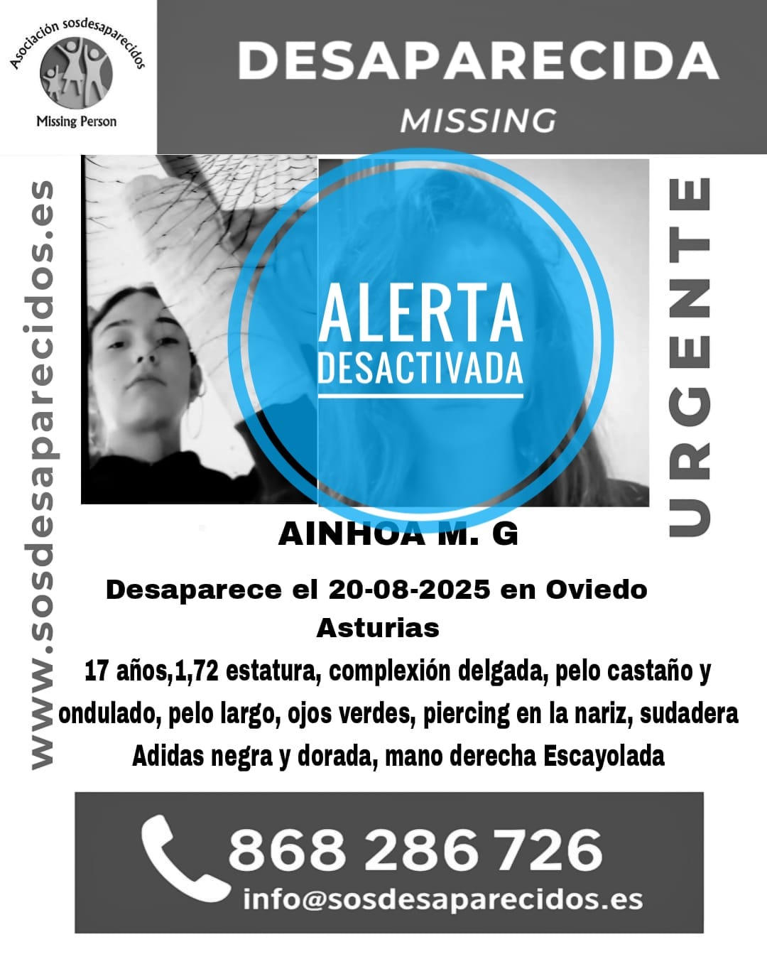 Tras varios días de angustia generalizada, reiteradas peticiones de ayuda por parte de la familia y mensajes contradictorios en redes sociales, el caso de la desaparición de Ainhoa M. G. se ha resuelto; felizmente, además. Según ha podido confirmar este diario la joven, de 17 años y a la que se le perdió el rastro en Oviedo el pasado 20 de agosto, ya ha sido localizada sana y salva, y ha sido devuelta a las dependencias en las que habitualmente reside. Todo, después de que, durante los últimos dos días, el espacio digital se haya poblado de publicaciones de solidaridad para con sus allegados, pero también de contenidos en los que se afirmaba que no estaba desaparecida, si bien tampoco había regresado a las instalaciones en las que debía encontrarse. Afortunadamente, todo ha quedado en una anécdota.
