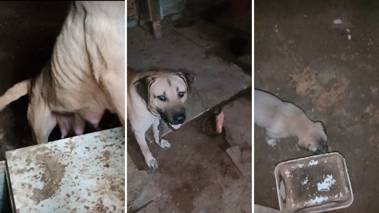 «El encierro permanente de la madre junto a su propio hijo macho ha derivado en una camada incestuosa» y «las heces blandas que pisan continuamente suponen alto riesgo de enfermedades, sobre todo ahora que los cachorros ya caminan. Carecen de agua limpia disponible en todo momento y hay indicios de que reciben menos de un litro al día, con alto riesgo de deshidratación». Los cachorros «ya buscan comida en el suelo, en lugar de poder mamar», y las vecinas sospechan que el hermano del adulto podría muerto envenenado por medicamento ansiolítico para consumo humano.