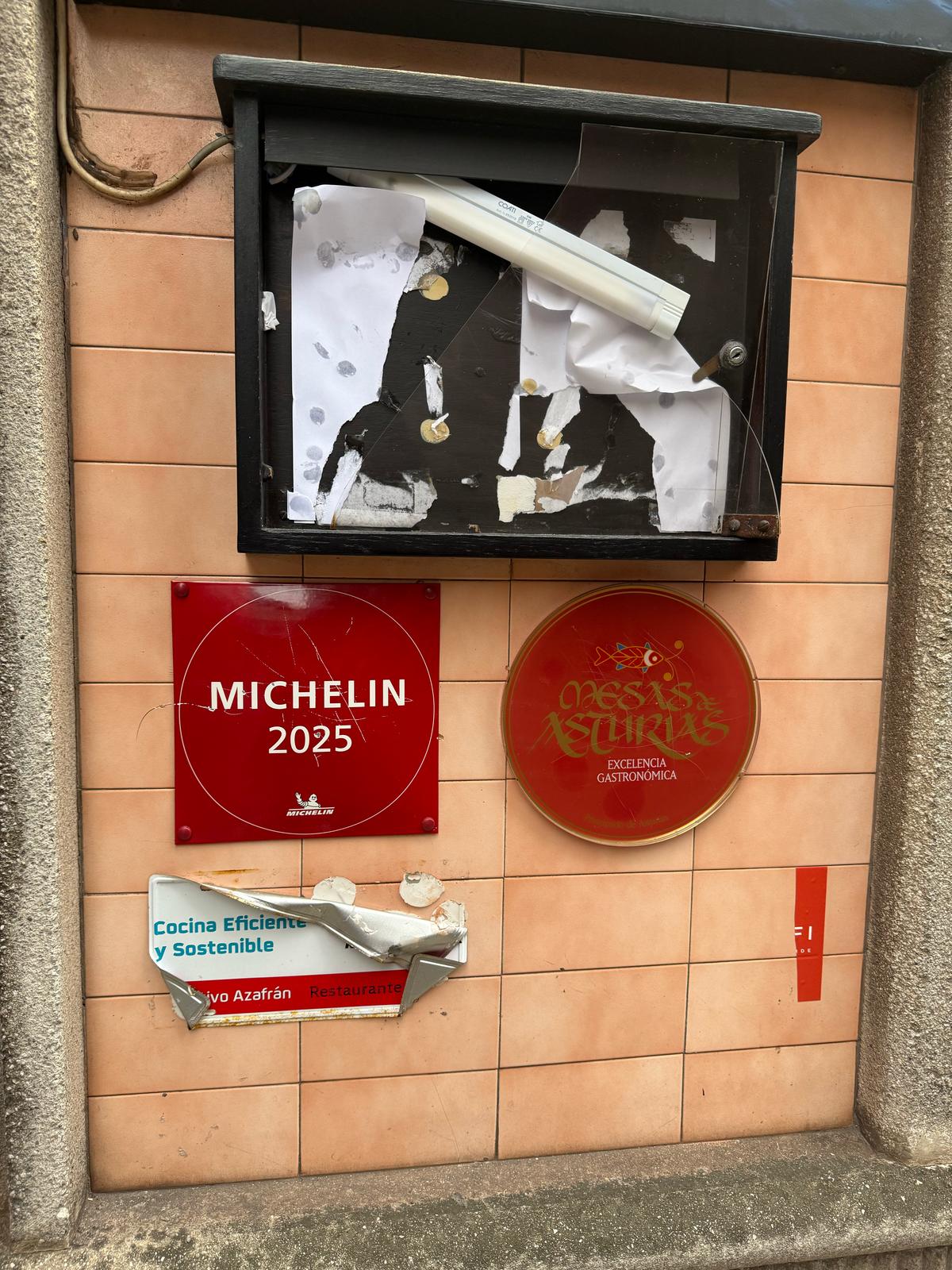 «Yo creo que esto fue a mala baba… Si no, nadie se toma tantas molestias«, reflexiona, risueña, la chef, que recibió el primer aviso a la 1.15 del domingo. «Hacía poco que habíamos cerrado; estaba ya en casa y, de pronto, me llamó el sereno, para contarme lo que les habían hecho a las placas«, prosigue. En ese primer asalto, los autores trataron de arrancar las placas, haciendo palanca; sin embargo, ante la imposibilidad de lograrlo, optaron por rallarlas y, de paso, «cargarse el cajetín, que es un armazón metálico con cristales, y llevarse los menús y la información que había dentro«. Aunque molesta por la mala nueva, Roguez optó por volver a intentar conciliar el sueño, consciente de que hasta el amanecer poco podría hacer. Sin embargo, a las 6 horas le entró una nueva llamada del sereno; en esta ocasión, el blanco había sido la puerta trasera. «Fue una cosa curiosa, porque retiraron todos los tornillos y se los llevaron. Ya podrían habérmelos dejado, para que luego volviese a colocar la manilla…«, ríe, con la serenidad que da la experiencia. Al fin y al cabo, en septiembre de 2024 el Abarike ya ocupó portadas cuando un cliente sustrajo una de las costosas cartas dispuestas en las mesas.