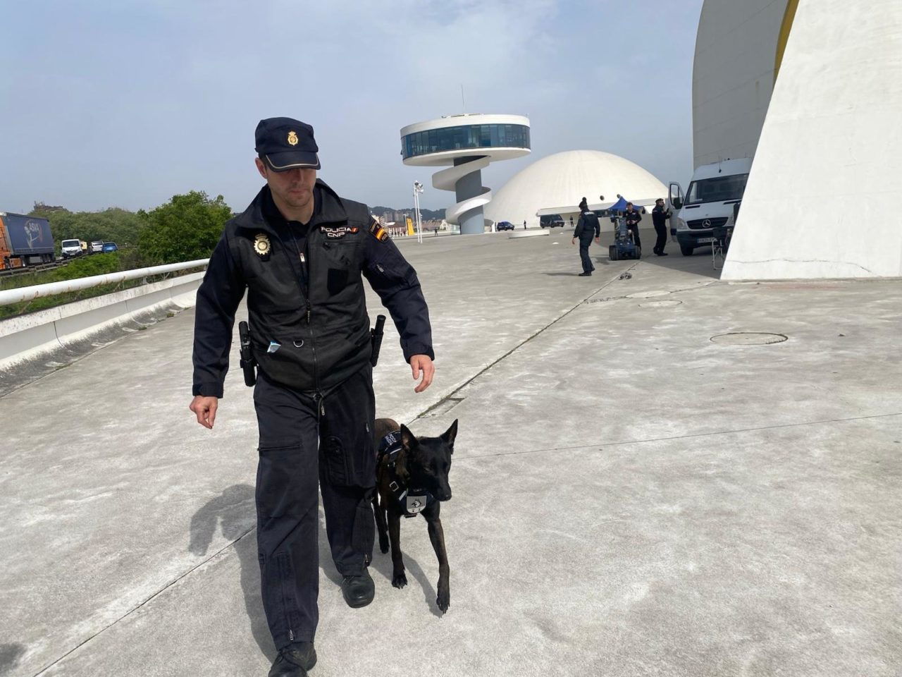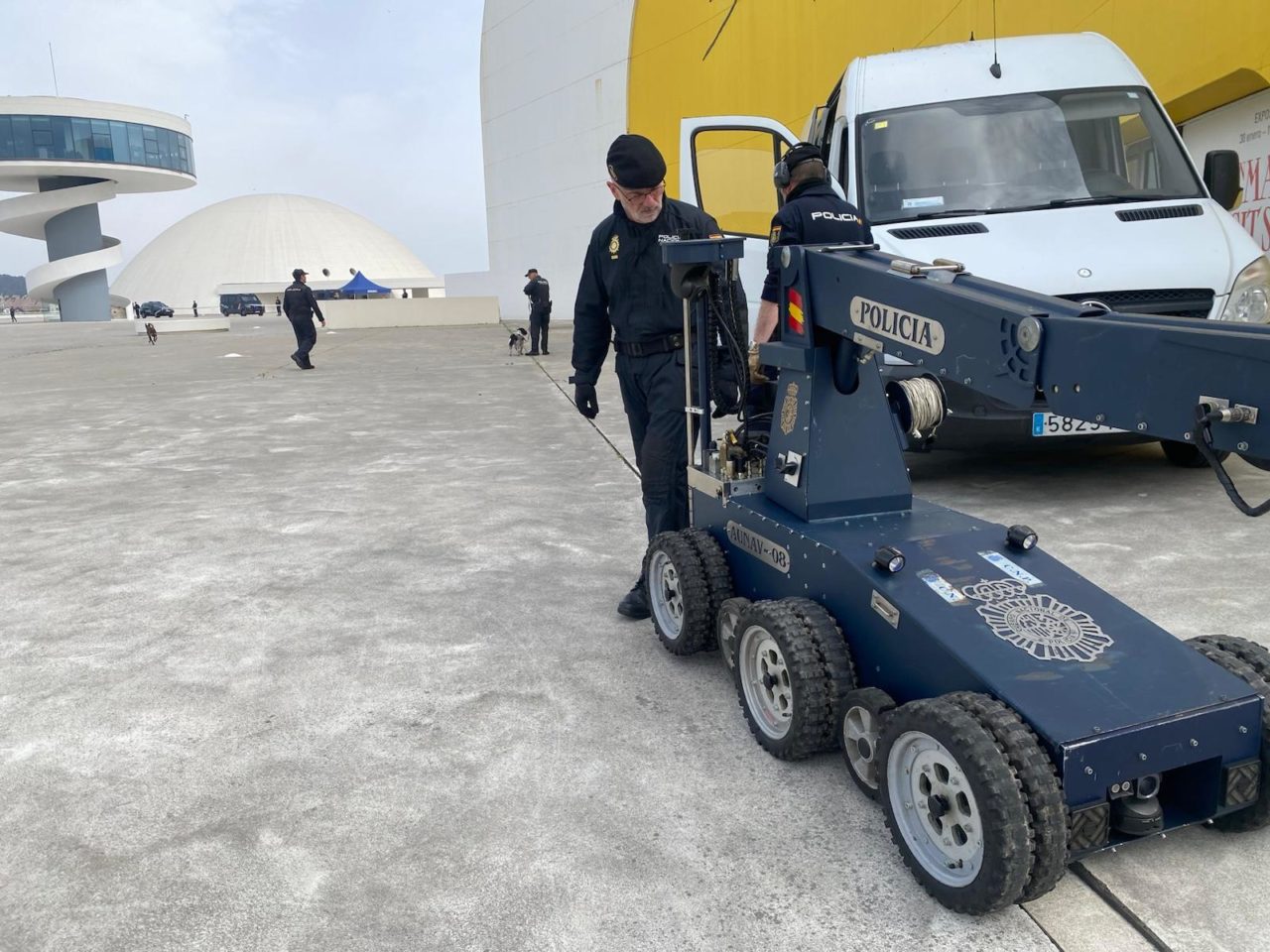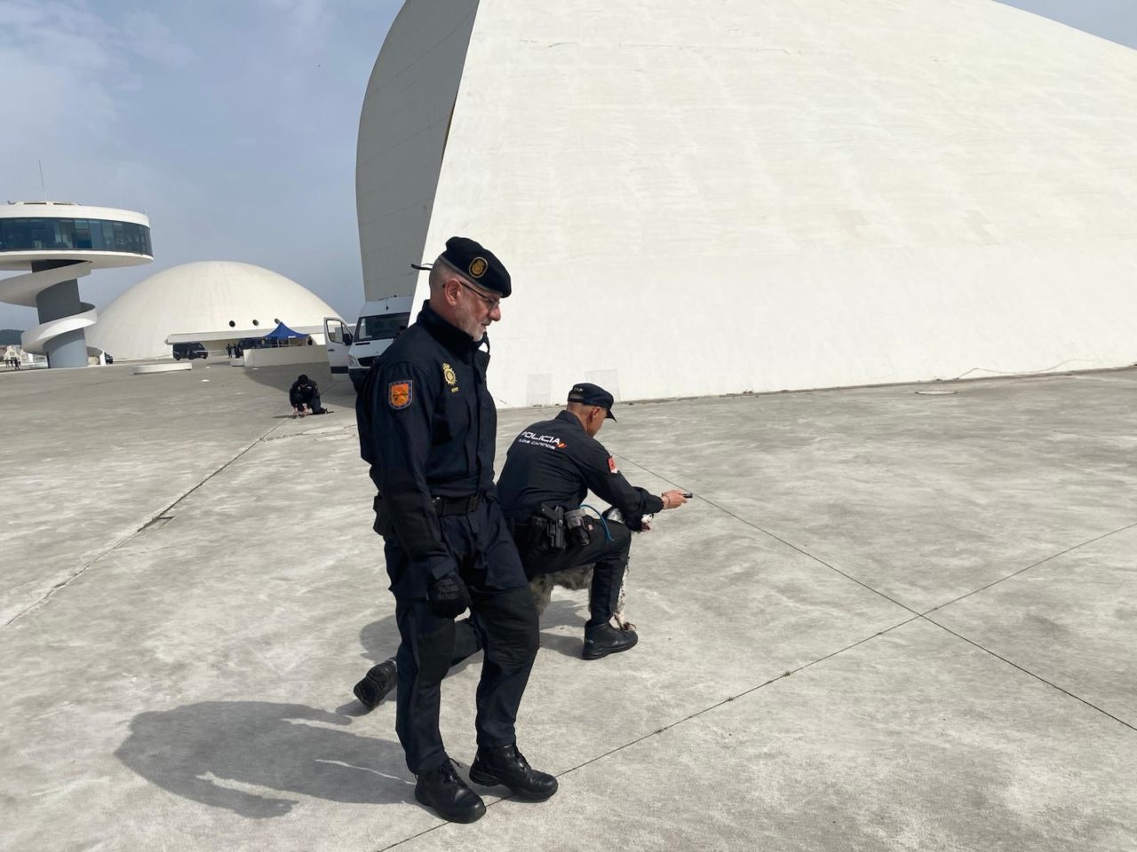 La Policía Nacional ha concluido con éxito un simulacro de intervención antiterrorista desarrollado este martes en el entorno del Centro Niemeyer, en Avilés. El ejercicio, que comenzó a las 11:00 horas, tenía como objetivo comprobar la eficacia de los protocolos de actuación y la capacidad de coordinación entre las distintas unidades especializadas y servicios de emergencia. La simulación se desarrolló conforme a lo previsto, cumpliendo los objetivos fijados en materia de seguridad, respuesta táctica y atención a posibles víctimas. Durante el operativo se recreó un escenario de amenaza por la presencia de un supuesto artefacto explosivo en el exterior del recinto.