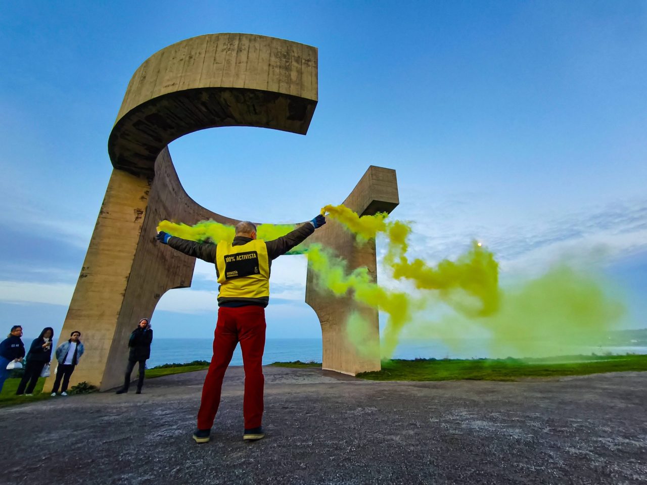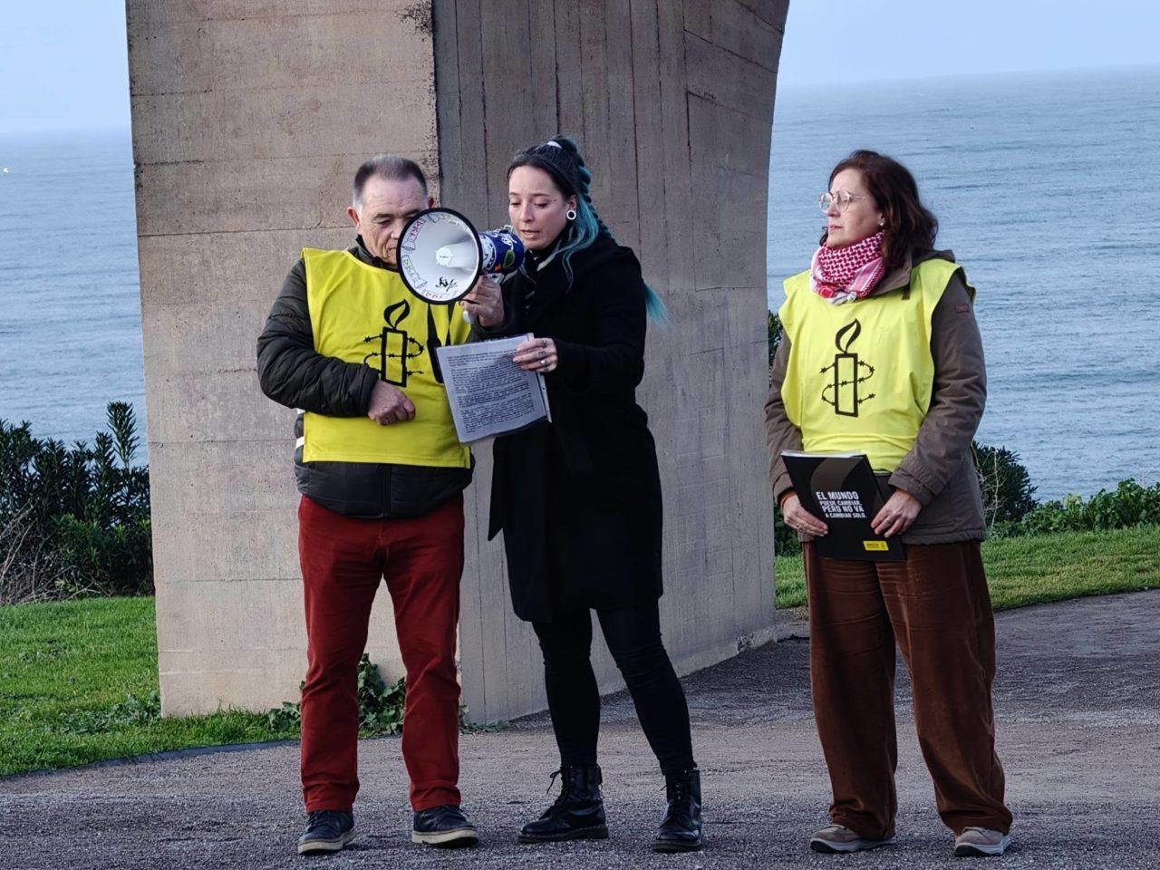 El Cerro de Santa Catalina acogió una acción promovida por Amnistía Internacional Asturias dentro de una convocatoria coordinada en numerosos puntos del Mediterráneo y el Cantábrico