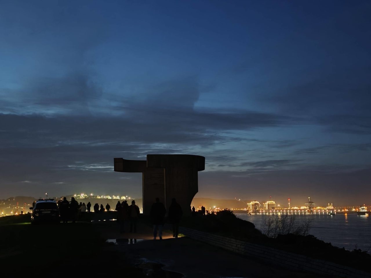 El Cerro de Santa Catalina, junto al monumento Elogio del Horizonte, fue escenario en la tarde de ayer de un encendido simbólico en defensa de los derechos de las personas migrantes y refugiadas. La iniciativa, organizada por Amnistía Internacional Asturias, se desarrolló de forma simultánea en numerosos enclaves del litoral mediterráneo y cantábrico.