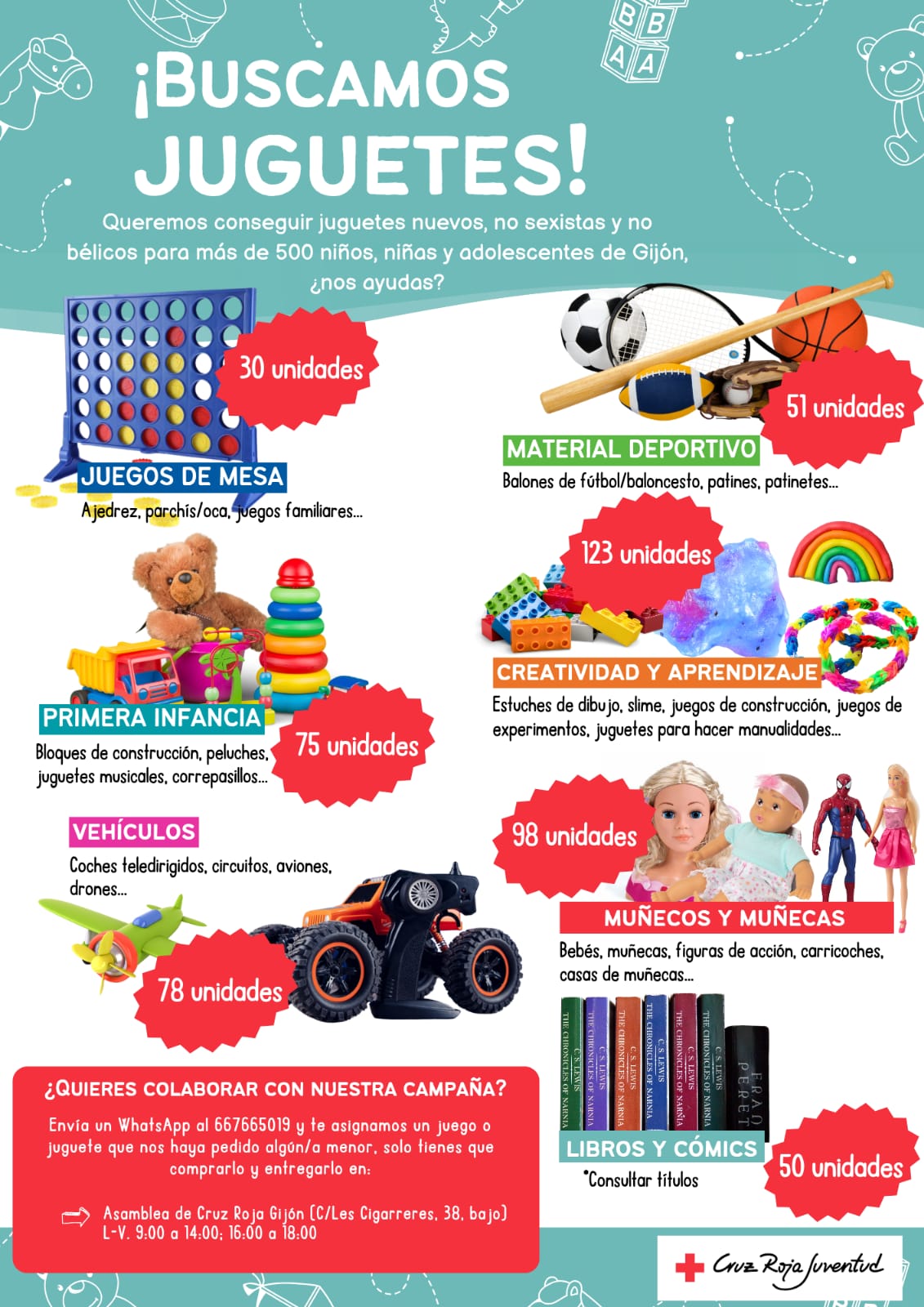 Cruz Roja Gijón ha puesto en marcha un año más su tradicional campaña de recogida de juguetes, una iniciativa que busca garantizar que todos los niños y niñas del municipio puedan recibir un regalo nuevo el día de Reyes. La entidad atenderá en esta edición a más de 500 familias, lo que supone aproximadamente 800 menores de todas las edades y nacionalidades, aunque la mayoría son españoles.