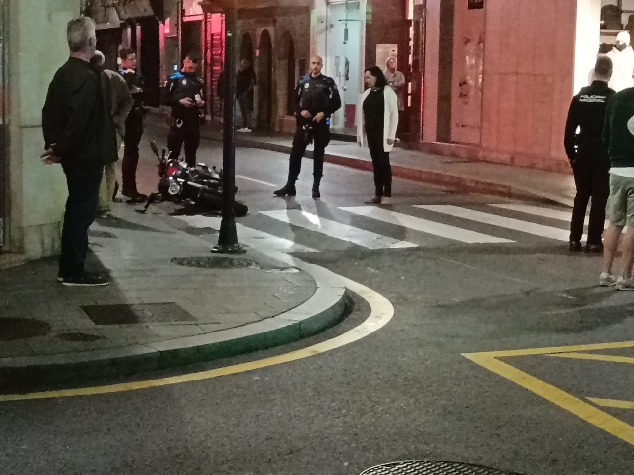 Un motorista resultó herido la pasada noche en un accidente de tráfico ocurrido en las inmediaciones de la plaza del Parchís, en el centro de Gijón. El siniestro se registró poco después de la medianoche, y en el mismo se vio implicado también un turismo, según informaron testigos del accidente. Hasta el lugar se desplazaron efectivos de la Policía Nacional (los primeros en llegar al lugar, según testigos presenciales), Policía Local y los servicios de emergencia, que atendieron al conductor de la motocicleta, quien permanecía consciente en el suelo tras el impacto. Los agentes no le retiraron el casco, siguiendo el protocolo habitual en este tipo de accidentes hasta la llegada de los sanitarios.
