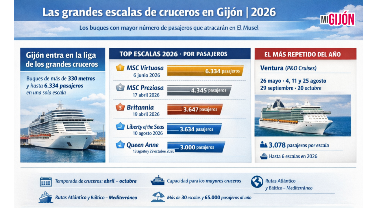 Cruceros: lo que desembarcará en 2026 en el Puerto de Gijón no tiene precedentes