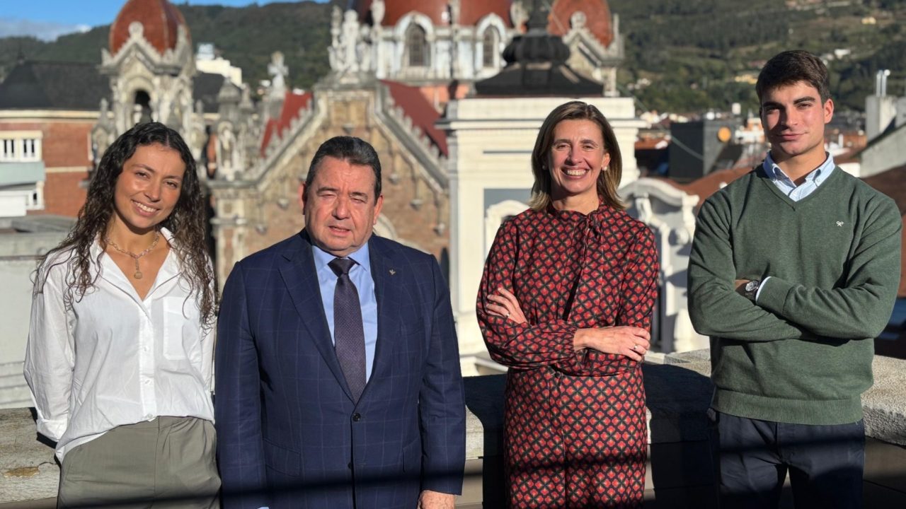 Fernando Martínez, presidente de la Fundación Caja Rural de Asturias, y Eva Pando, directora de la Fundación, en el centro, rodeados por Claudia Martínez y Fernando Espadas, dos de los estudiantes beneficiarios de las becas. / Fundación Caja Rural de Asturias