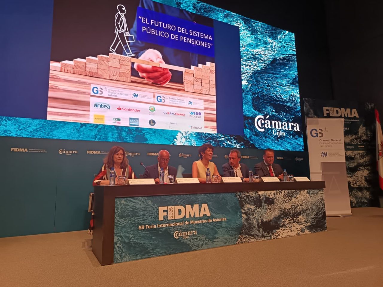 En agosto de 1925 «nacieron las escuelas sociales bajo el mando Ministerio del Trabajo, formando a los primeros graduados sociales», recordó esta mañana Beatriz María Coto, presidenta del Colegio Oficial de Graduados Sociales de Asturias, en el comienzo del acto conmemorativo del centenario de creación de la profesión celebrado en el marco de la Feria Internacional de Muestras de Asturias (FIDMA), que por primera vez contaba con un Día del Graduado Social. Un evento bajo el nombre ‘El futuro del sistema público de pensiones’ que estuvo presidido por la ministra de Inclusión, Seguridad Social y Migraciones, Elma Saiz, que llegó a primera hora de la mañana al recinto ferial.