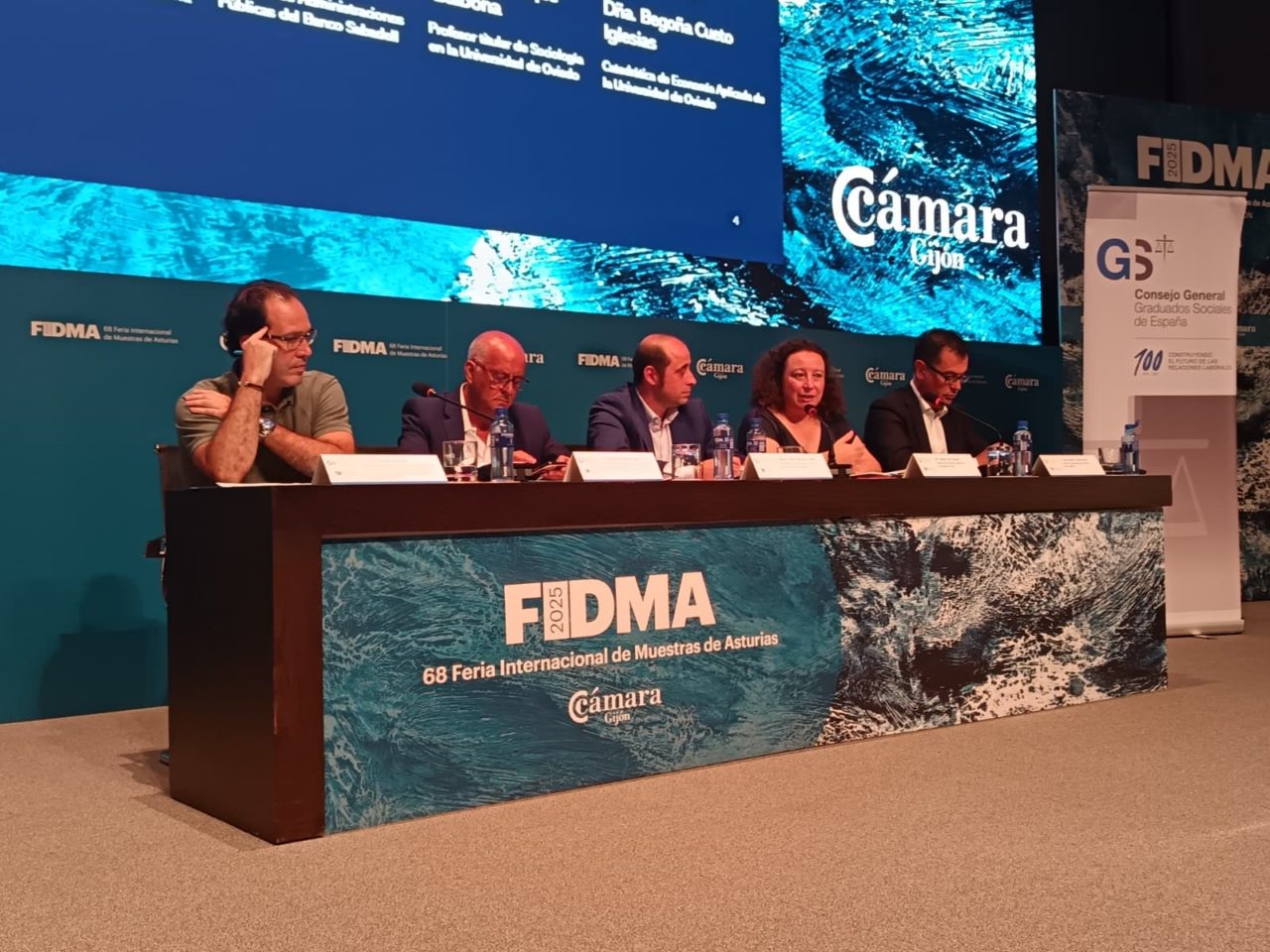 El acto siguió con una mesa redonda sobre esta misma cuestión moderada por el vicepresidente segundo del Consejo General de Graduados Sociales de España, Marcos Óscar Martínez, en la que participaron el propio presidente, Merchán; Begoña Cueto, catedrática de Economía Aplicada de la Universidad de Oviedo y vicerrectora de Transferencia y Relaciones con la Empresa; David Luque, profesor titular de Sociología en la Universidad de Oviedo; y Juan Manuel Lorenzo-Mena, director de Administraciones Públicas del Banco Sabadell. Lo clausurarían Coto, Merchán y Alfredo Fernández Santos, director comercial territorial del Banco Sabadell.