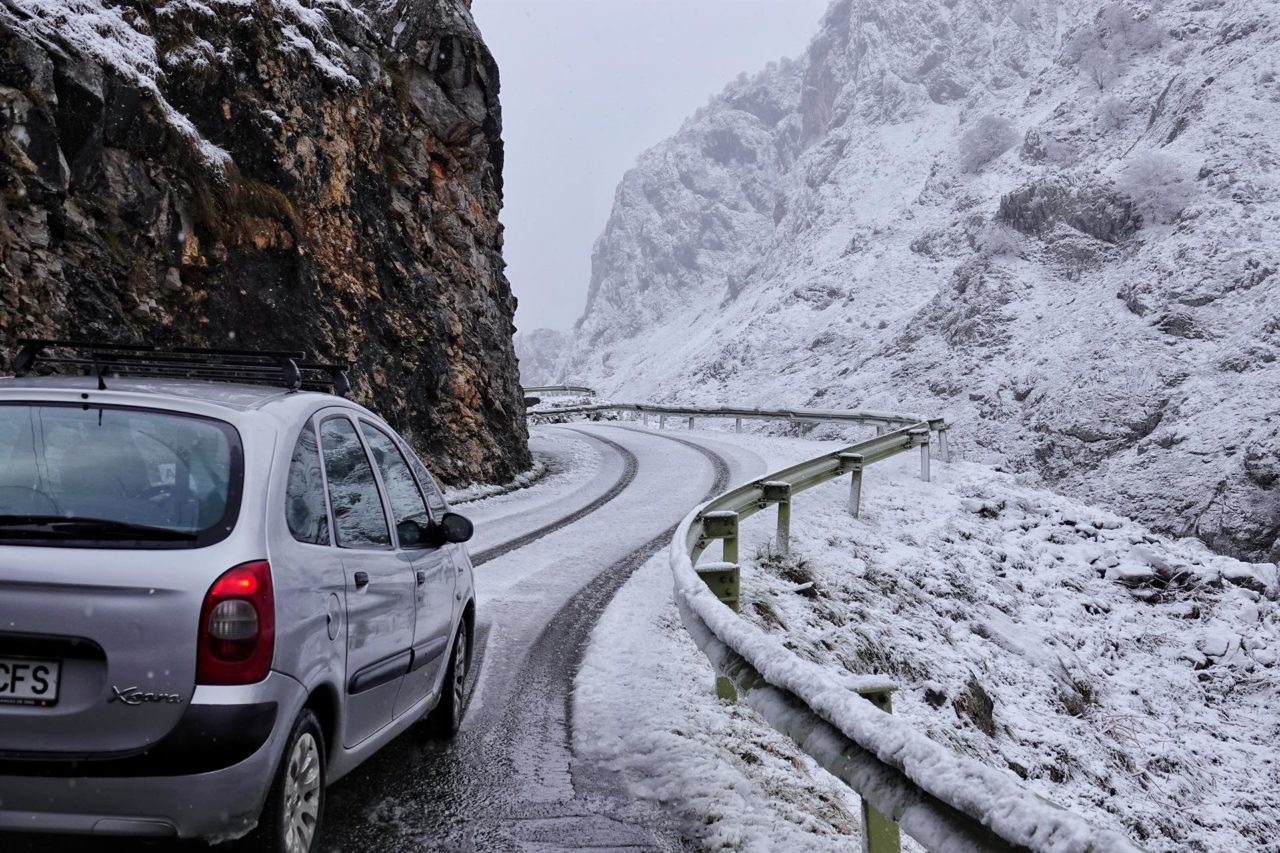 Siete puertos de montaña requieren el uso de cadenas y varios accesos permanecen cerrados por nieve y hielo