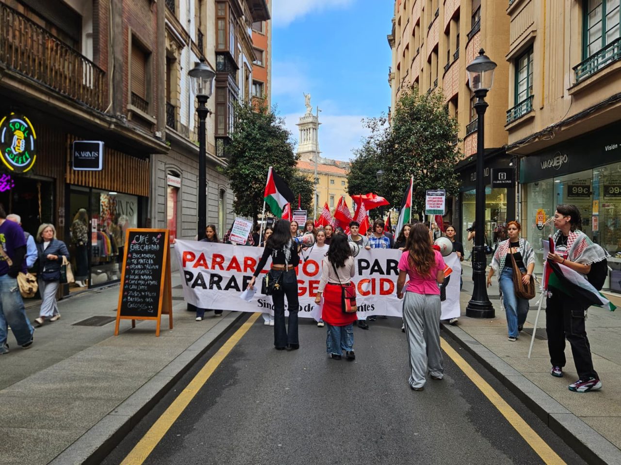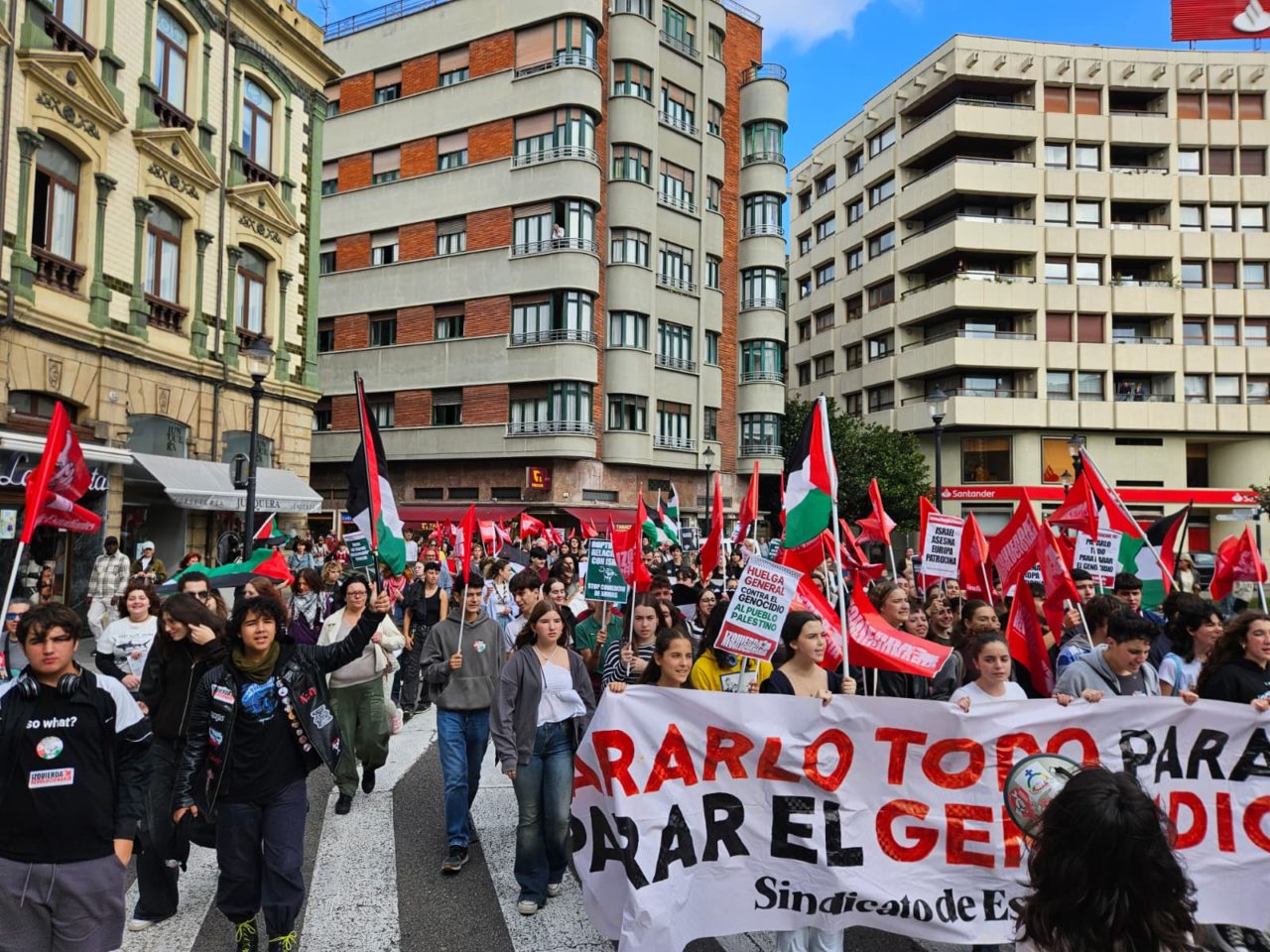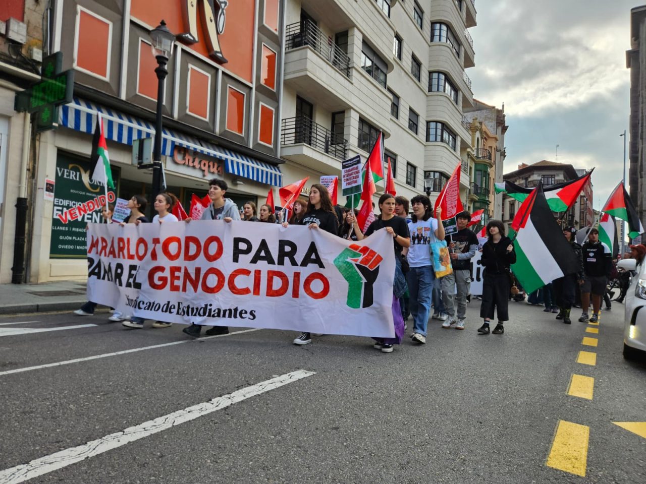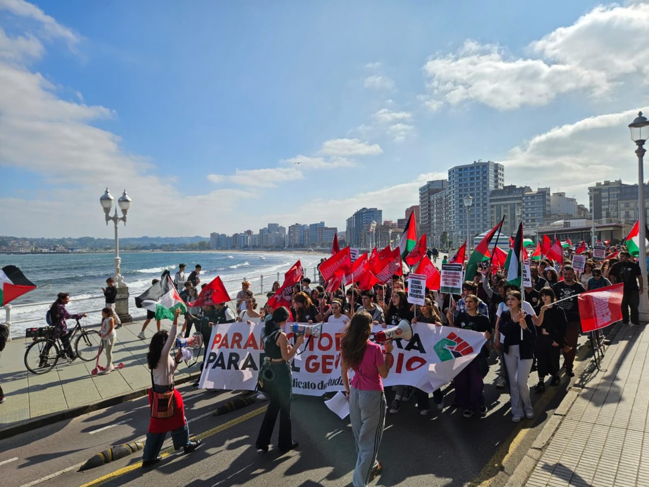 La paz es un bien delicado. Un objeto frágil, comparable con un fino cristal de exquisita factura tallado con ingente trabajo… Y, como ese último, capaz de quebrarse con sólo un chasquido. Por eso mismo son pocas las personas en todo el mundo que no observan con recelo la tregua firmada por Israel y Hamás para poner fin a la matanza perpetrada por el primero de esos actores en Gaza, preguntándose si ese equilibrio imperfecto volverá a romperse… Y, de ser así, cuándo. Y es precisamente esa perspectiva, la de una reactivación de la violencia en la Franja, la que ha llevado a cientos de alumnos, convocados por el Sindicato de Estudiantes, a manifestarse este miércoles en las dos principales ciudades de Asturias: Oviedo y Gijón. Particularmente en la segunda, recorrida desde mediodía por una manifestación que, al grito de «No es una guerra, es un genocidio», ha llevado a dos centenares y medio de personas a concentrarse ante el Ayuntamiento para exigir no sólo una vigilancia exquisita, por parte de la comunidad internacional, del cumplimiento del acuerdo de paz… También un ejercicio de memoria para que el horros que han sufrido los gazatíes durante los últimos dos años no sea olvidado jamás.