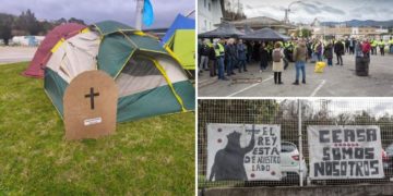 La plantilla de ENCE acampa ante la empresa y se prepara para una huelga que «podría durar meses»