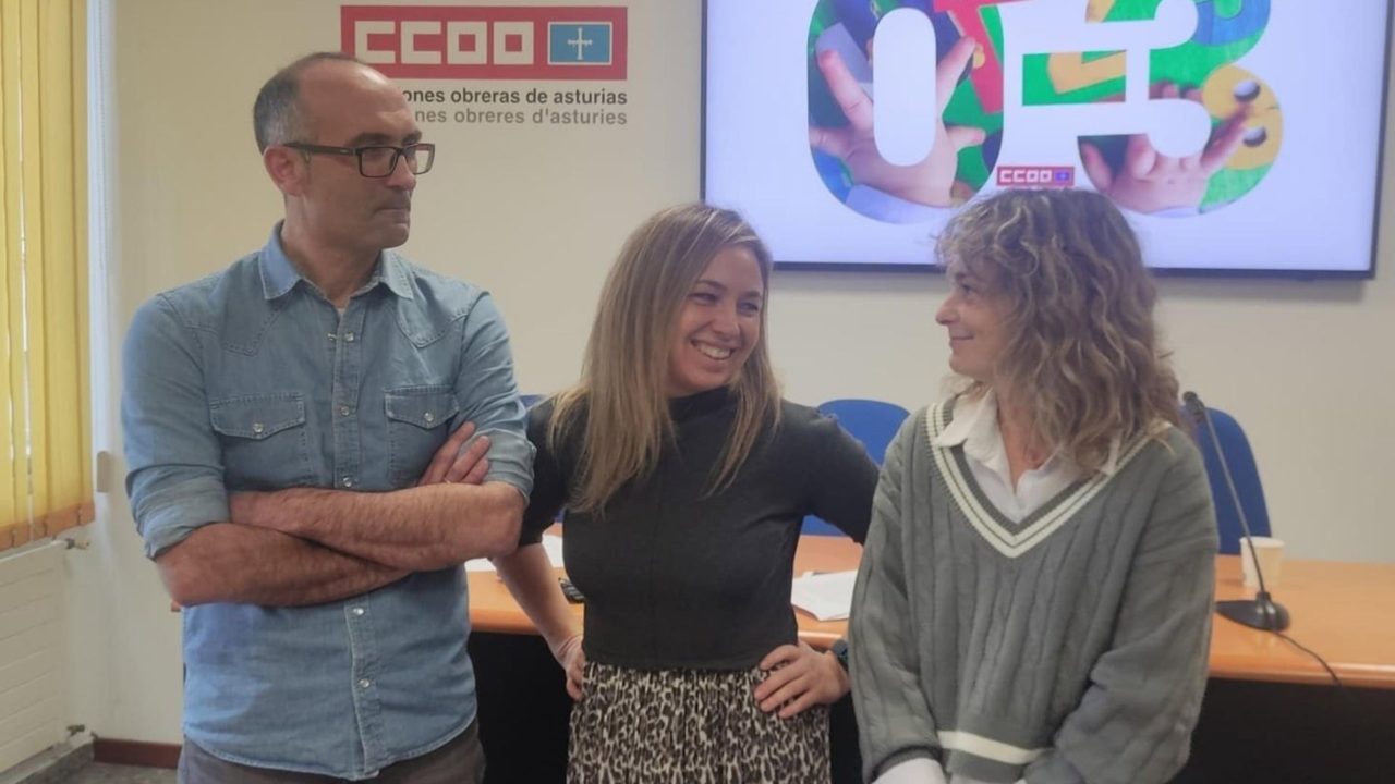 Los representantes de CCOO Damián Manzano, Tania Alonso y Carmen Riesgo. / EP