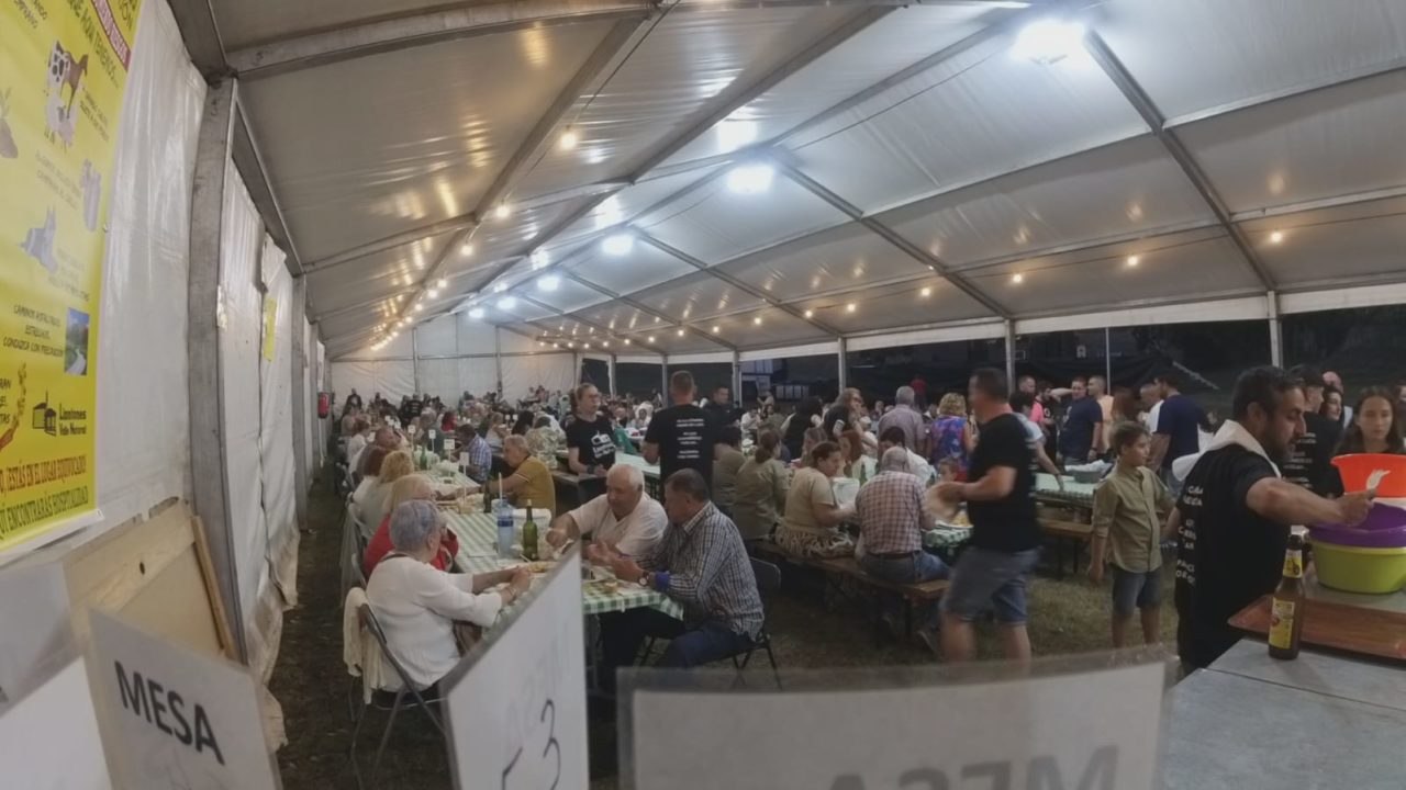 El buen tiempo acompañó en la primera jornada de las fiestas de Llantones, que según avanzaba la tarde iba viendo cómo vecinos y visitantes empezaban a llenar la carpa instalada en el tradicional ‘prau’ de la fiesta, junto a la capilla. La convocatoria para la fiesta del marisco era las 21.30 horas, con un menú cerrado de 35 euros para el que se adquirieron 140 tickets para 500 comensales. Éste incluía medio kilo de centollo y de ‘ñocla’, dos ‘andariques’ y langostinos a la plancha, acompañados con una botella de sidra. Pablo Pérez se encargó de animar la cena con sus versiones de canciones conocidas por todos y después los presentes pudieron bajar la comida con la música seleccionada por DJ Dani Vieites.