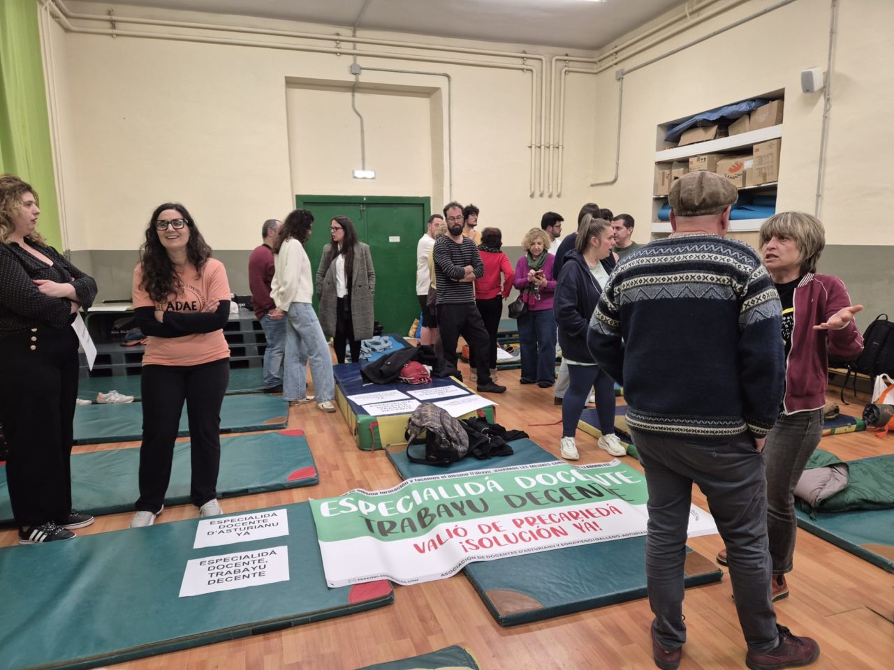 Sacu de durmir en mano, a les 17.30 hores entamaron a llegar al xixonés CP Cabueñes los primeros maestros y maestres de Llingua Asturiana y Gallego-asturiano. El motivu yera’l zarru convocáu pola Asociación de Docentes d’Asturianu y Eonaviego/Gallego-asturiano (ADAE) pa visibilizar la so situación llaboral y denunciar la lentitú cola que, consideren, el Gobiernu asturianu ta llevando les xestiones col Ministeriu d’Educación, Formación Profesional y Deportes pa la creación de la especialidá docente. Ehí fadríen nueche una ventena de persones pa, a les 7 hores, salir del centru p’acudir a los propios a cumplir cola so xornada llaboral.
