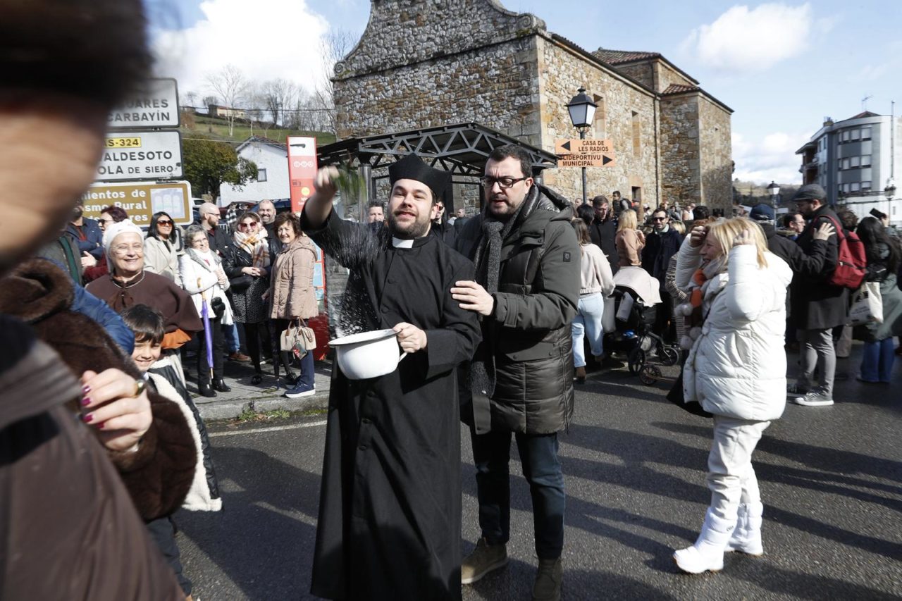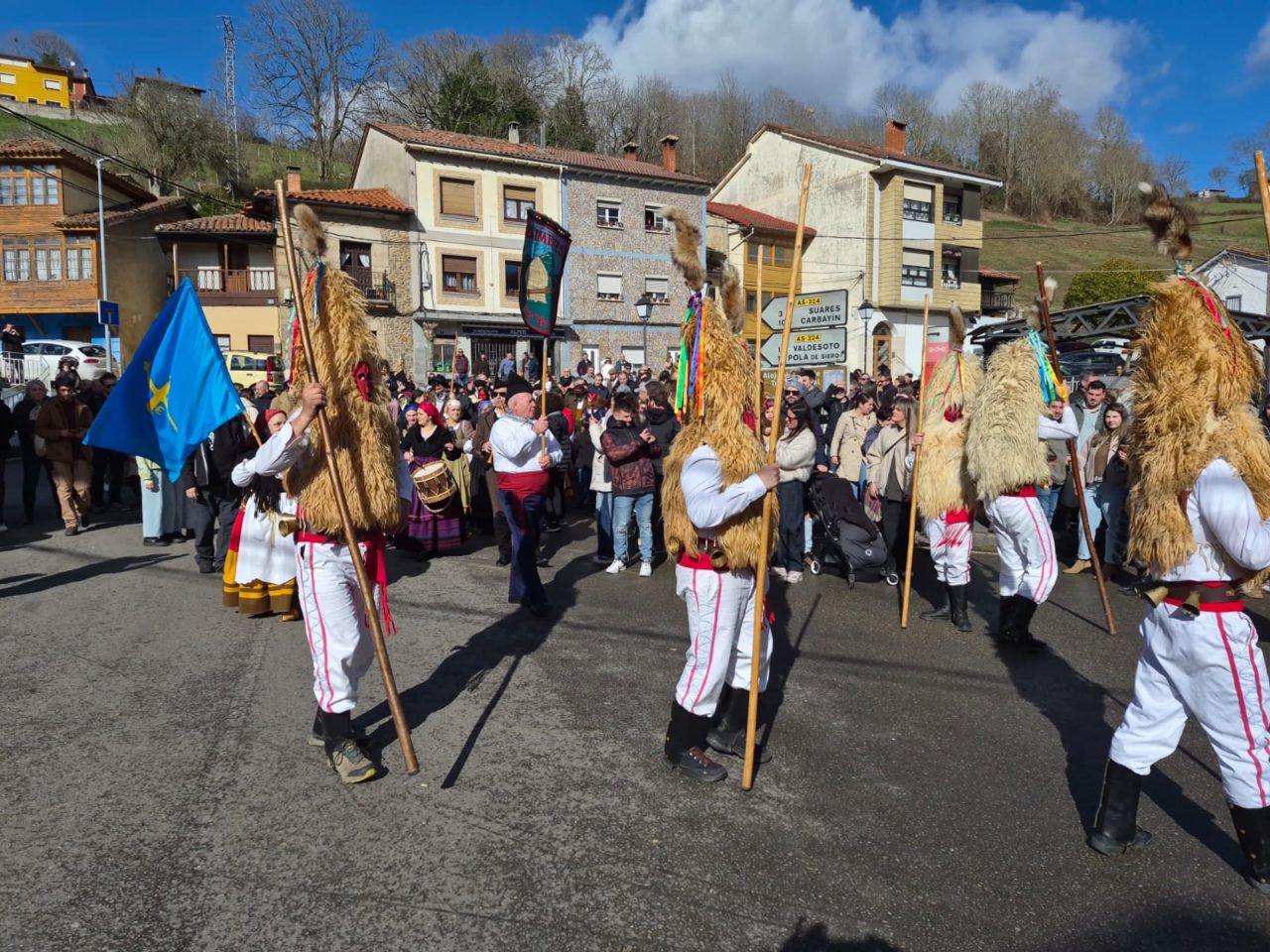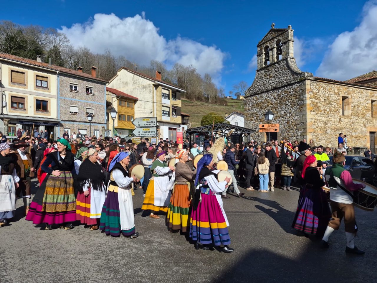 La mazcarada d’iviernu de Valdesoto sigue col vezu de visitar el conceyu vecín pa entamar un Domingu de Sidros y Comedies; munchu públicu averóse a Santuyano pa disfrutar de les representaciones, que tuvieron al presidente Adrián Barbón como espectador