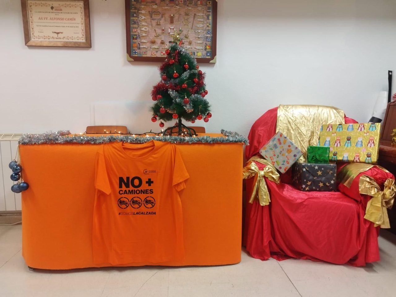 Un pequeño abeto, unos Reyes Magos, una camiseta contra el paso de camiones y varios detalles más integran el despliegue, muy celebrado por los lugareños; además, ayer se celebró la última manifestación del año, y ya se preparan acciones más serias para 2026
