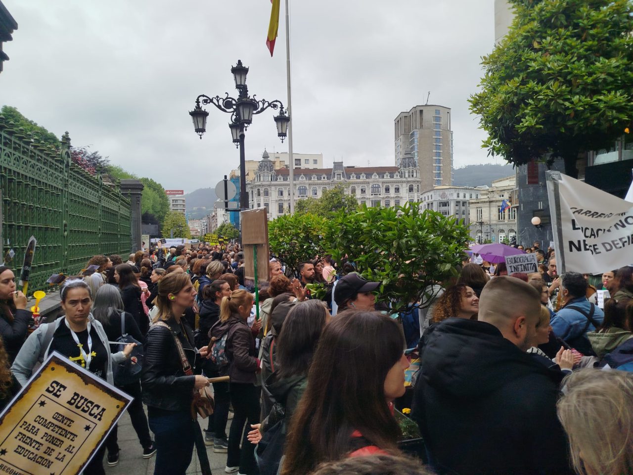 Con camisetas negras como símbolo de protesta —ya conocidas como la “marea negra” de la educación—, el profesorado volvió a exigir al Gobierno asturiano medidas concretas que mejoren sus condiciones laborales y refuercen la educación pública