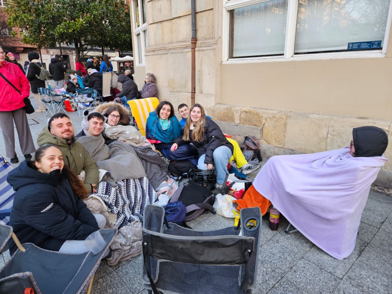 «No estuvimos tranquilos por el viento», confesaba un miembro de Os Brasileiros do Xixón, mientras que desde Xaréu nel Ñeru destacaban que «no hemos dormido nada, pero merece la pena». Y es que, pese a lo dura que resultó en esta ocasión la espera, la camaradería entre los presentes hizo más llevadera la situación. A las 9.30 horas abrían las taquillas y los primeros de la larga cola —a las 8.50 horas llegaba hasta la calle San Bernardo por la calle Covadonga— se aseguraban asientos para unos de los eventos más esperados del Antroxu xixonés, que arranca hoy con el Xueves de Comadres.
