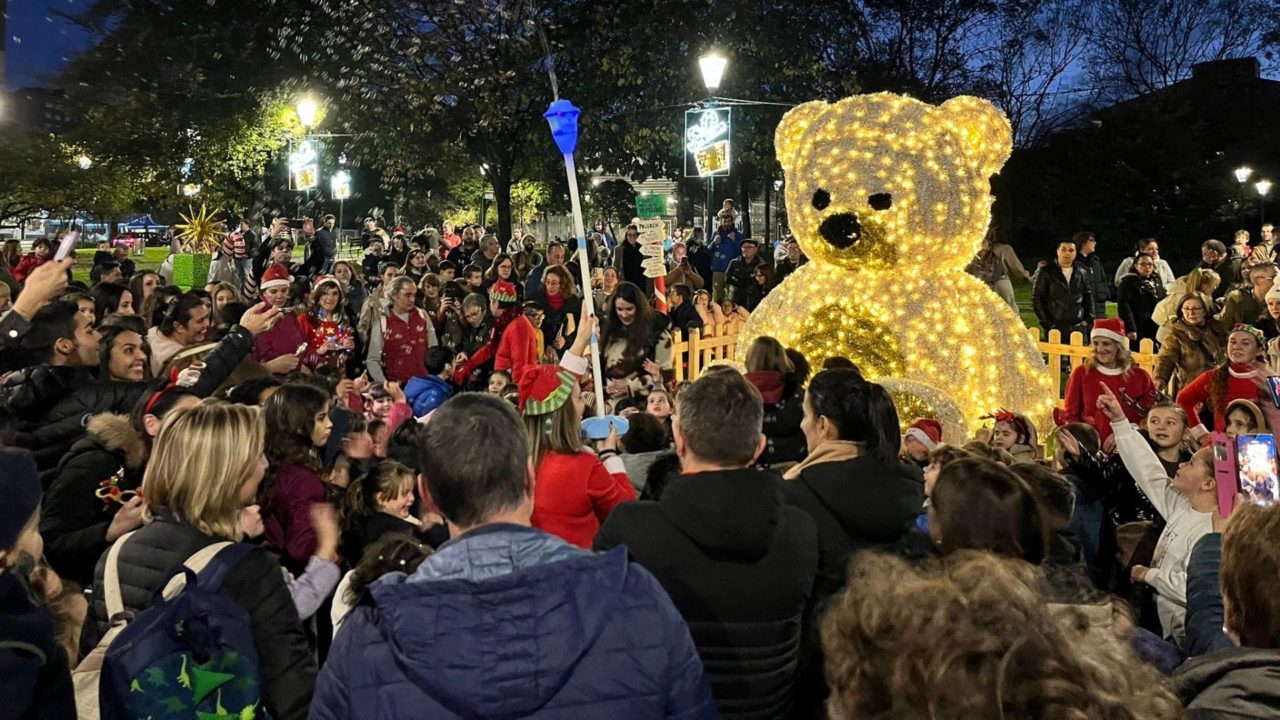Hay Navidad más allá del centro de Gijón. Mucha, por cierto, según hacia donde se mire. Y quienes alberguen dudas sobre ello sólo tienen que repasar las imágenes dejadas ayer por el encendido del alumbrado en el Polígono de Pumarín. Porque si, de un tiempo a esta parte, se viene hablando año tras año de la pasión de desata la que se ha convertido en la indiscutible mascota navideña del barrio, el entrañable -y enorme- oso luminoso ‘Poligosín‘, ese furor volvió a quedar demostrado este viernes. Cientos de personas -no menos de cuatrocientas entre niños y adultos, según fuentes de la Asociación Vecinal ‘Evaristo San Miguel’– peregrinaron desde la efigie del no menos querido reno ‘Renato’, situado en la calle Clara Ferrer, se congregaron en torno a la oronda y sonriente figura para presenciar el momento en que su cuerpo comenzó a brillar con luces multicolores, simbolizando con ello la entrada oficial del Polígono, como del resto de la urbe, en el trajín de estas celebraciones. Todo un momento para atesorar y recordar.