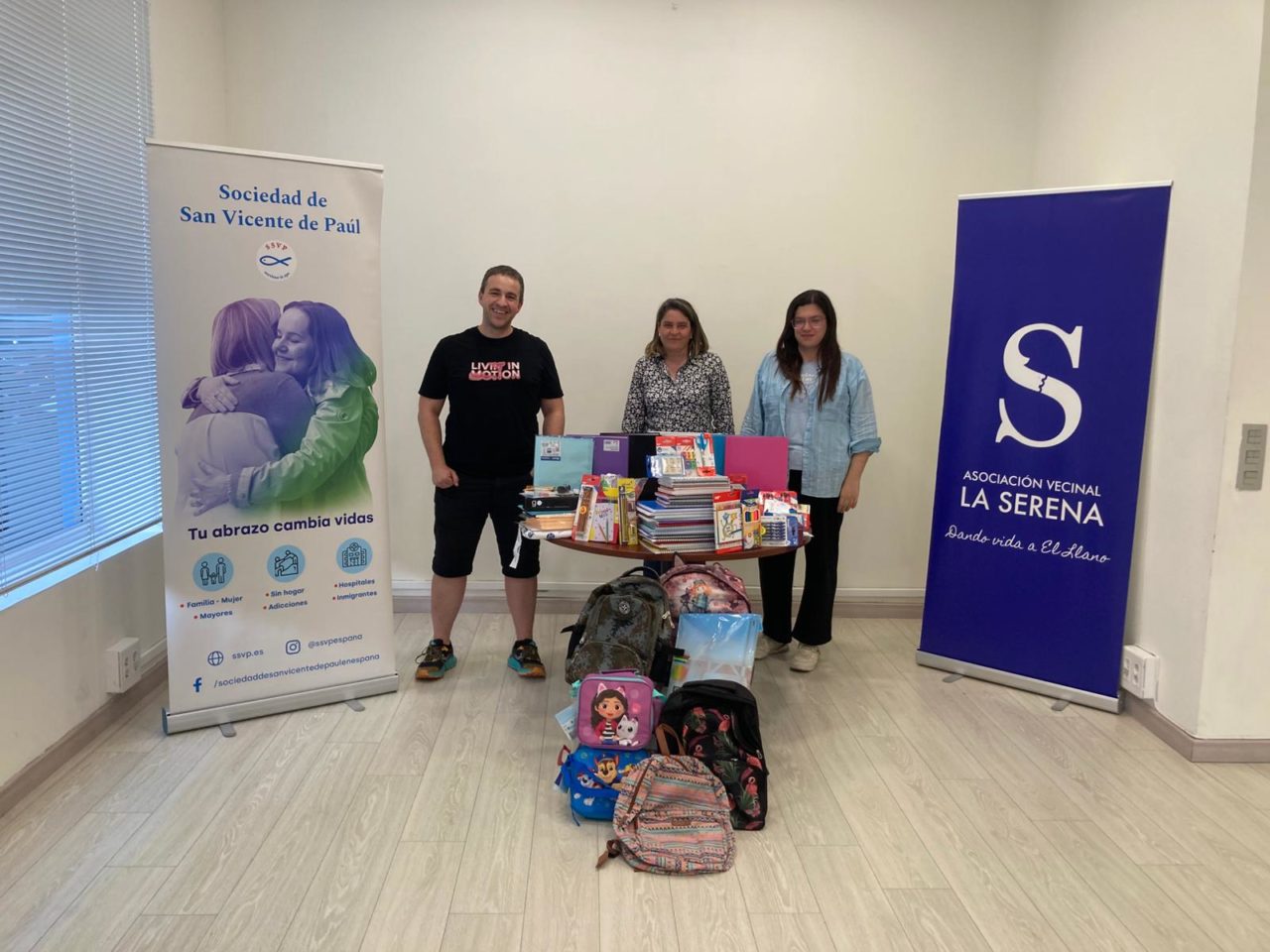 La Asociación Vecinal ‘La Serena’ y la Sociedad de San Vicente de Paúl firman conjuntamente un proyecto de recopilación de material escolar, que ha logrado reunir hasta veinticinco kilos; el total será entregado al Colegio Público ‘La Escuelona’