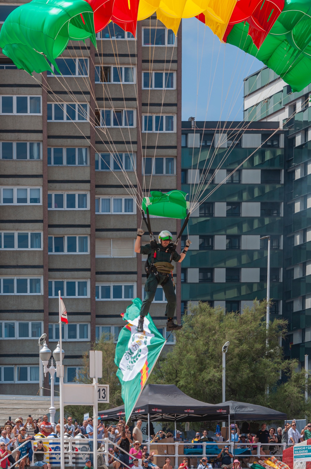 Si observamos los bocetos de aeronaves legados a la posteridad por el genio florentino Leonardo da Vinci, el desarrollo de la aerostación a finales del siglo XVIII, el primer vuelo a motor de los hermanos Wilbur y Orville en 1903 y, antes de todo eso, un buen puñado de intentos hechos desde tiempos remotos -casi siempre, con funestos resultados-, queda claro que el ser humano siempre ha soñado con surcar los cielos. En avión, en dirigible, en globo, en cometas… Y, sí, también recurriendo a paracaídas. Un invento con pedigrí hispano, por cierto, si se piensa que el primer intento conocido de saltar utilizando un elemento que frenase la caída, realizado en 853 por el andalusí Abbás Ibn Firnás, tuvo por escenario Córdoba. Más de un milenio después, y tras haber alcanzado su madurez en las dos guerras mundiales, el paracaidismo es hoy una actividad sumamente depurada, mezcla de técnica, valor y buena suerte, y convertida una disciplina deportiva con todas las de la ley -el Comité Olímpico Internacional le ha dado su bendición-, capaz de regalar impresionantes acrobacias a cargo de los cientos de equipos activos en todo el mundo. Y uno de ellos, de hecho, tuvo su bautismo de fuego ante el público en Gijón: el Equipo de Paracaidismo de la Guardia Civil, una unidad relativamente joven, pero que ya apunta maneras. Sus capacidades pudieron ser vistas por primera vez por la ciudadanía este julio, durante el XIX Festival Aéreo Internacional… Y no parece que vaya a ser su última visita a la ciudad.