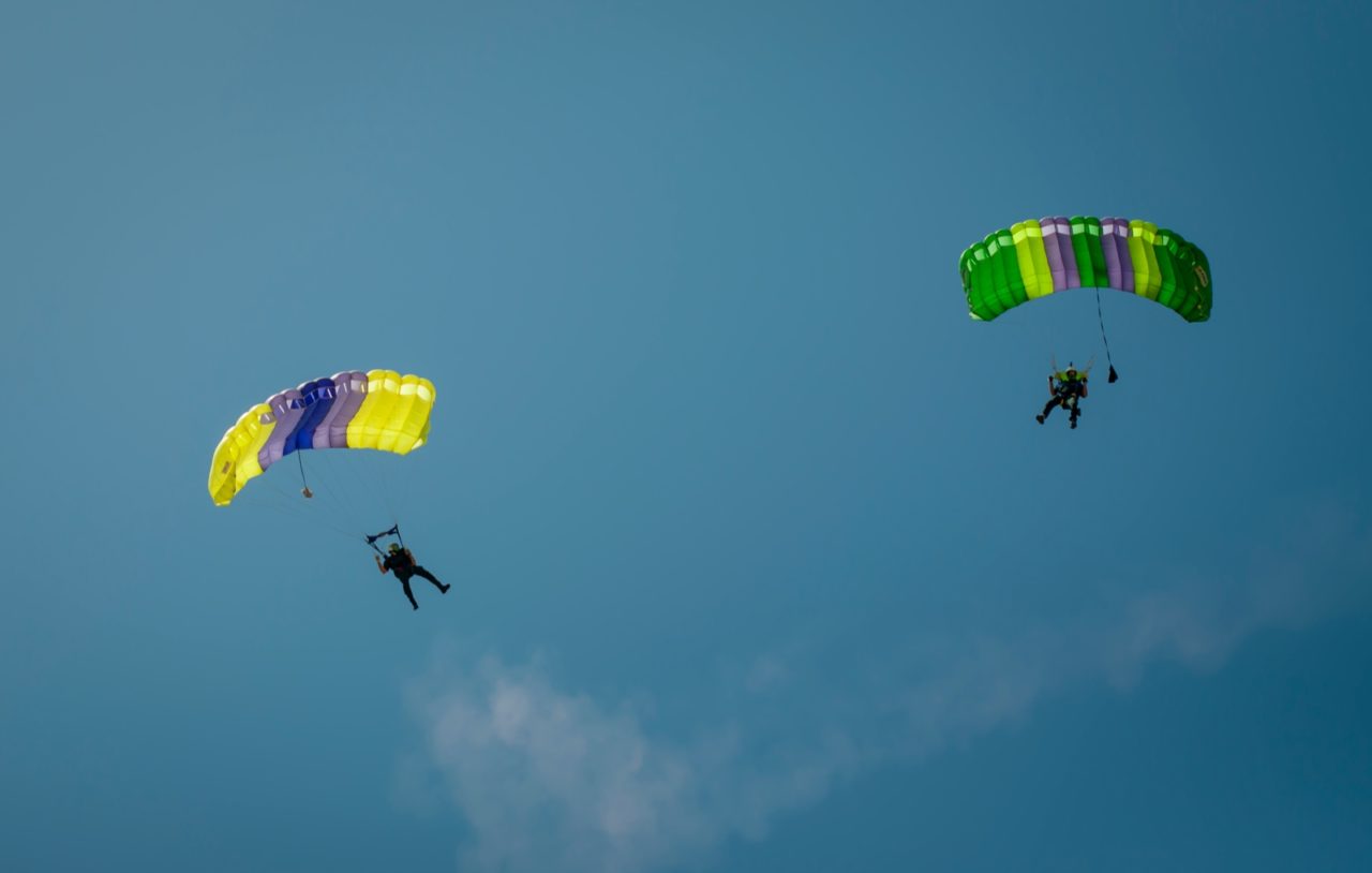 Hasta la fecha, y dejando a un lado esas experiencias puramente lúdicas en Gijón y Torre del Mar, el paso del Equipo de Paracaidistas por competiciones especializadas en la materia, civiles o militares, le ha reportado alguna que otra alegría y, sobre todo, mucha motivación. «Es cierto que, como nosotros no tenemos dedicación exclusiva, hay unidades como la PAPEA a las que ni soñamos con ganar, pero en 2022 conseguimos un bronce en relativo en un campeonato civil, en Castellón«, relata Pizarro. Aquella tercera posición fue todo un espaldarazo; máxime si se tiene en cuenta que la competitividad es absolutamente sana. Tanto, que no hay ni un atisbo de vergüenza al admitir que «a equipos como el del Escuadrón de Zapadores Paracaidistas (EZAPAC), o la propia PAPEA, se lo debemos prácticamente todo, porque nos han ayudado muchísimo«. Sin ir más lejos, aquellos adiestramientos más específicos se realizan en la Escuela Militar de Paracaidismo ‘Méndez Parada’, integrada en la murciana Base Aérea de Alcantarilla, dependiente del Ejército del Aire; un escenario idóneo para poner a prueba no sólo técnicas de salto, capacidades de resistencia y acrobacias, sino también conceptos de seguridad. «Hay que extremar la prudencia, aunque el accidente típico de alguien que pierde el conocimiento o se distrae ha dejado de ocurrir; llevamos dos paracaídas con un dispositivo de apertura automática, y si a 330 metros detecta que el agente sigue en caída libre, los despliega en el acto«, acota Pizarro.