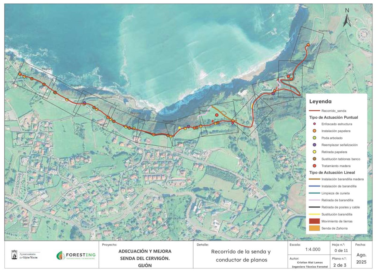 El Ayuntamiento de Gijón, a través del Servicio de Parques y Jardines dependiente de la Concejalía de Medio Ambiente y Sostenibilidad, ha adjudicado a la empresa Excavaciones Allende y Jardinor, SL, las obras de adecuación y mejora del tramo de la senda del Cervigón comprendido entre la Casa de Rosario Acuña y el Parque de La Providencia. El contrato, con un importe de adjudicación de 35.224,52 euros más IVA -42.621,67 euros en total- y un plazo de ejecución de dos meses, permitirá actuar sobre uno de los recorridos litorales más frecuentados de la ciudad, mejorando su seguridad, accesibilidad y estado de conservación. Los trabajos incluyen la renovación del pavimento, la retirada de barandillas deterioradas y su sustitución por nuevas estructuras de plástico reciclado, además de la reposición de bancos y elementos de mobiliario urbano dañados. También se acometerá la limpieza de cunetas, la reposición del encachado de piedra y la retirada definitiva de unas escaleras inutilizadas próximas a la playa de Peñarrubia, que serán sustituidas por un talud de tierra naturalizado.