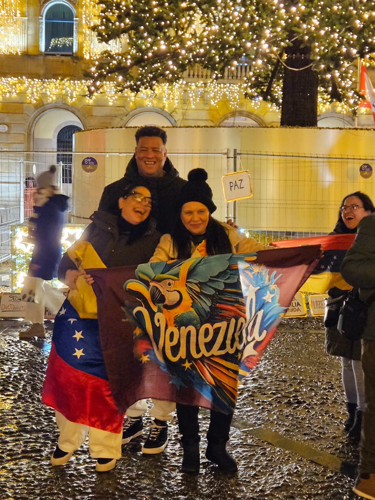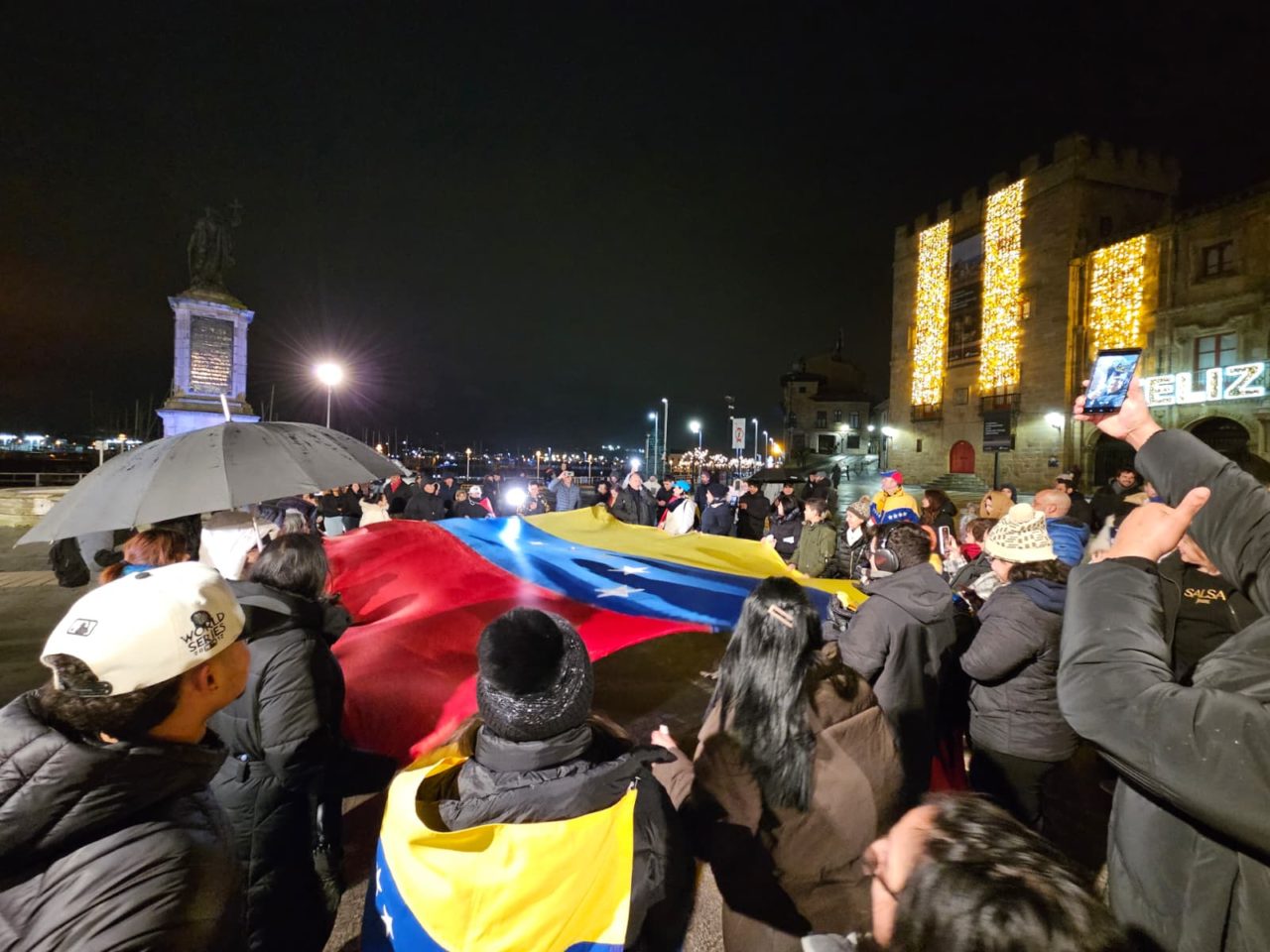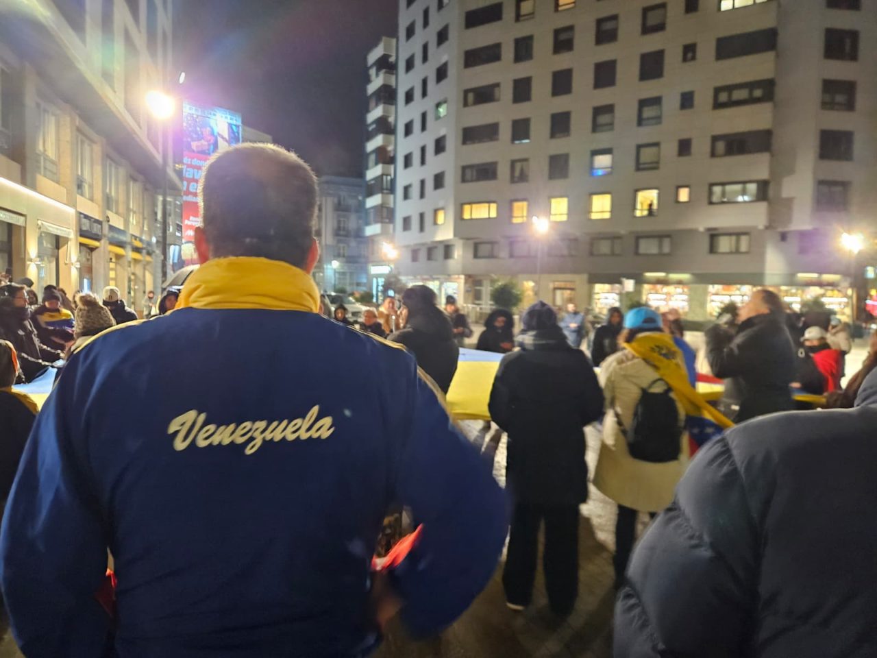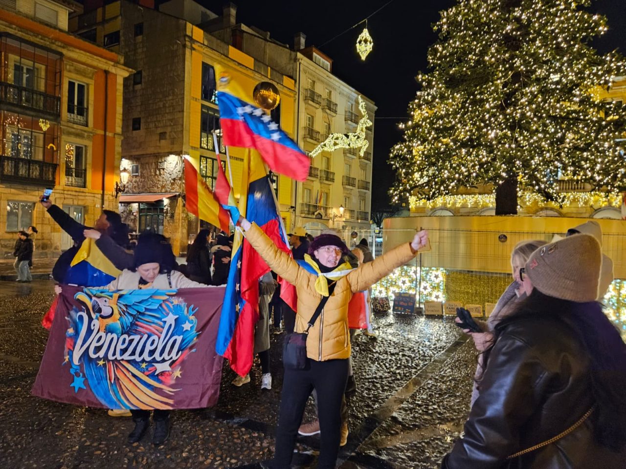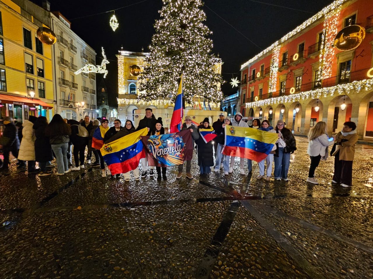 Sin embargo, la captura, extracción y encarcelamiento de Maduro ha generado un punto de vista alternativo: el de aquellos, fundamentalmente venezolanos emigrados, que secundan, aplauden y hasta bendicen el asalto estadounidense y al mismísimo Donald Trump. Y ayer estos últimos no se quedaron de brazos cruzados. Tras saber de la convocatoria crítica en El Parchís, el Comandito Voto Mundial Abierto Libertad Sin Fronteras, que coordina desde Gijón la opositora al chavismo Charo Pérez, organizó a toda prisa una concentración propia a las siete, en la plaza Mayor, para dar visibilidad al júbilo de la jornada. Ahora bien, ya fuese por la lluvia y el frío imperantes, por el escaso margen de tiempo desde la emisión de la convocatoria -los mensajes comenzaron a circular a las cinco de la tarde- o por alguna otra razón, apenas una veintena de personas respondieron al aviso. Eso sí, lo hicieron enarbolando pancartas y banderas venezolanas, cantando, bailando y agradeciendo lo que es visto por ellos como una liberación. «Los chavistas declararon una guerra contra la humanidad; lo que hicieron ha sido peor que una bomba atómica«, declaró Pérez… Instantes después de que un espontáneo español que transitaba por la plaza espetase a los concentrados que «el tirano Maduro ha sido reemplazado por el tirano Trump». Al oír tales palabras, varios venezolanos participantes en el acto se encararon con él, acusándole de «chavista» e intentando expulsarle del espacio. Por fortuna, la cosa no pasó de lo verbal.