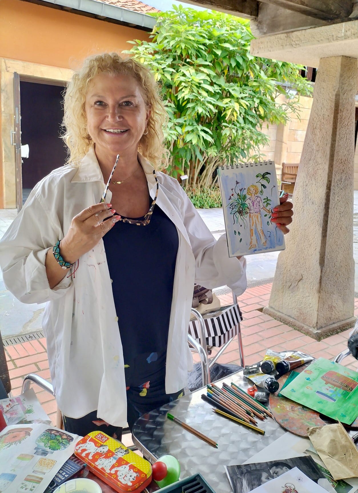Patricia Ibaseta Díaz se acaba de jubilar de su trabajo en la abogacía, pero tiene tantísima actividad que quedar con ella ha sido un triunfo. Eso sí, descubrir su vida a lo largo de esta charla ha sido tan apasionante como divertido. Y esa vida, que ella ve llena de color, la plasma en su mayor afición: la pintura. Desde su refugio de Ponga, la antigua casa de la familia de su madre, deja volar su imaginación y aprovecha cualquier superficie para darle vida siempre desde su ojo de artista. Y es que desde muy pequeña la cultura pictórica ha formado parte de ella.