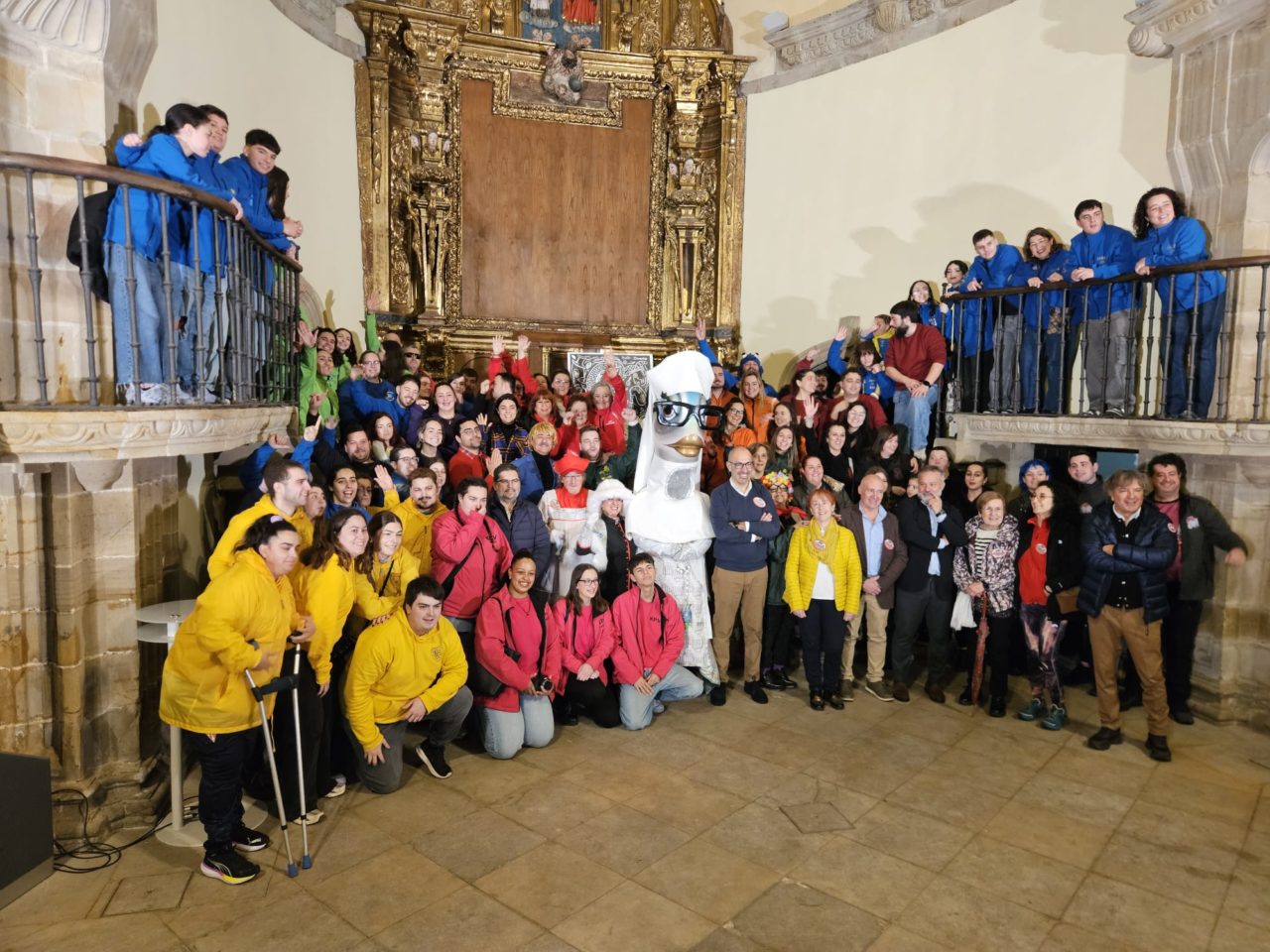 «Charangueros… Charangueras… ¡Estamos súper contentas de estar aquí!», clamó una entusiasmada ‘Perlamari’ desde el presbiterio, al que llegó tras recorrer nave del templo entre los aplausos y ovaciones del público allí reunido. Un público que, todo sea dicho, no perdió detalle de los matices del atuendo, sutilmente modificado tras la exclusiva publicada por este diario hace pocos días, que lo recreó, valiéndose de inteligencia artificial (IA), a partir de los datos de la propuesta filtrados. Así, además de sustituir la mitra original por una sencilla cofia, se suprimió la cruz que habría decorado el frontal del hábito, y aquella que debería haber rematado el rosario portado se reemplazó… Sí, por una sardina. No obstante, el detalle más celebrado fue el par de grandes gafas de montura negra llevadas por ‘Perlamari’; las mismas que «me dejó en herencia nuestro queridísimo Cienfuegos, y que llevo este año en su homenaje, aunque no veo un pijo». Un guiño al difunto exdirector del Festival Internacional de Cine de Xixón (FICX) José Luis Cienfuegos, fallecido el pasado diciembre, que resultó de lo más celebrado por la concurrencia.